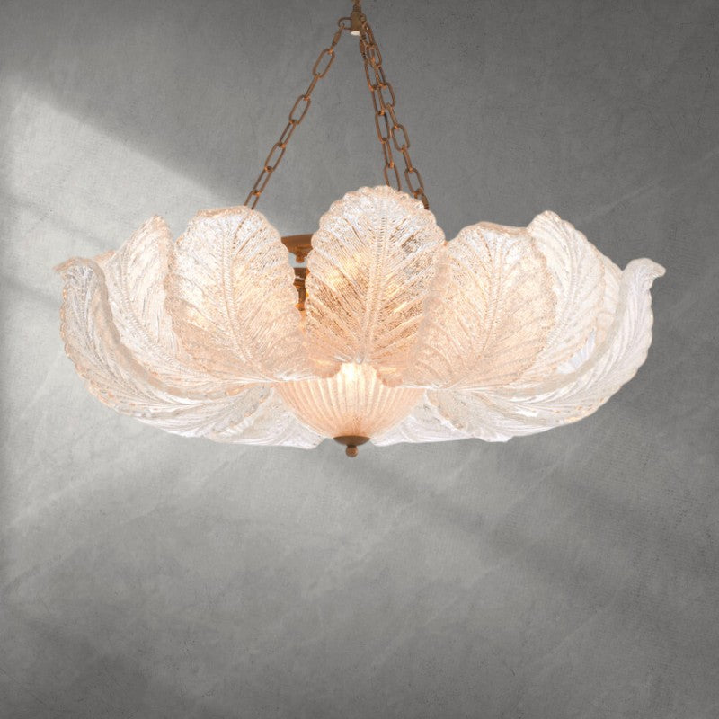 Aged Brass and Textured Glass Bouquet Style Large Chandelier