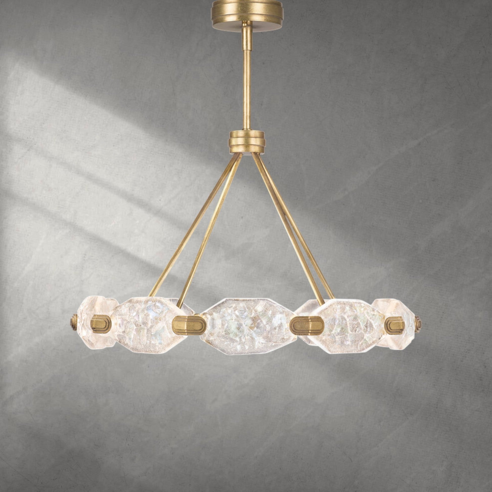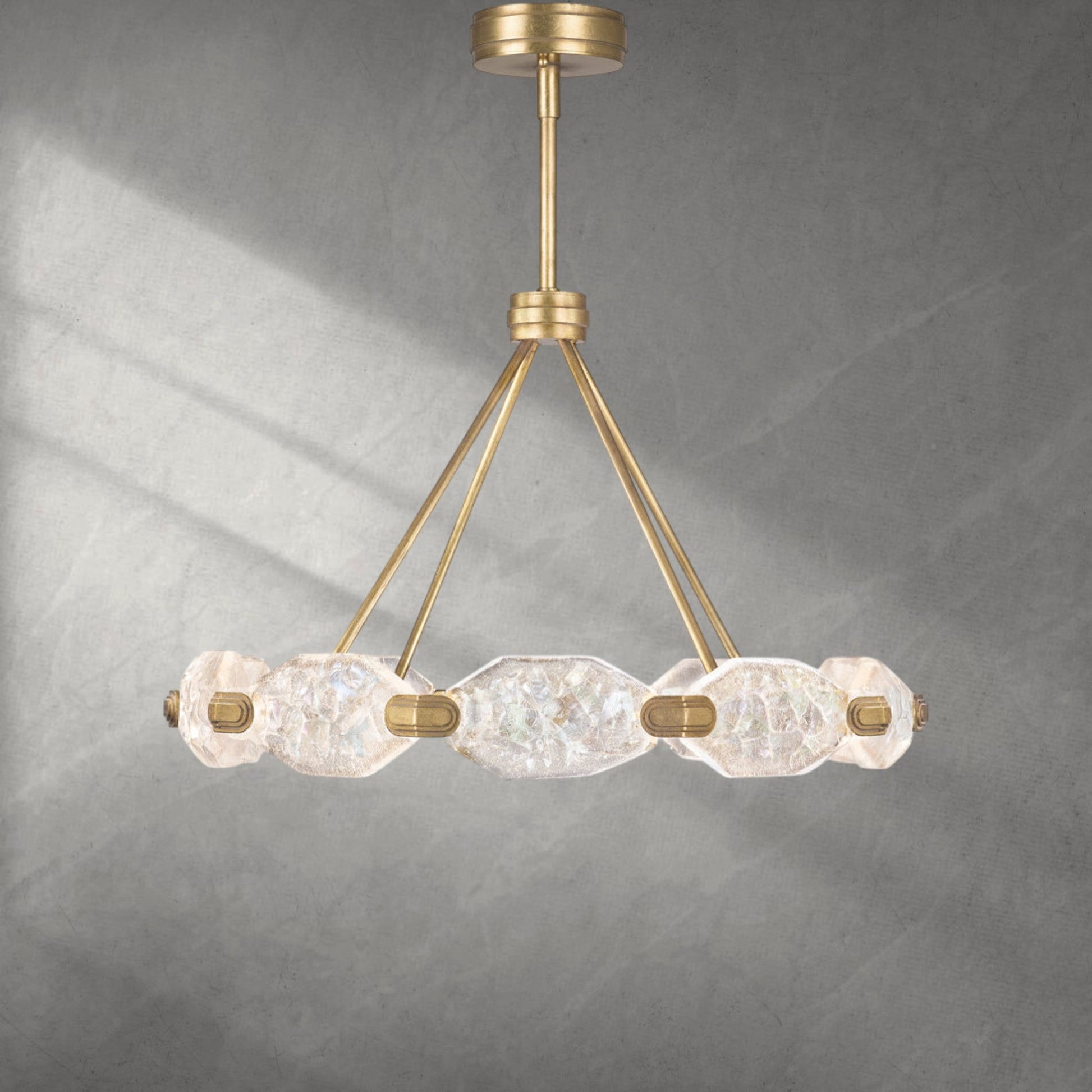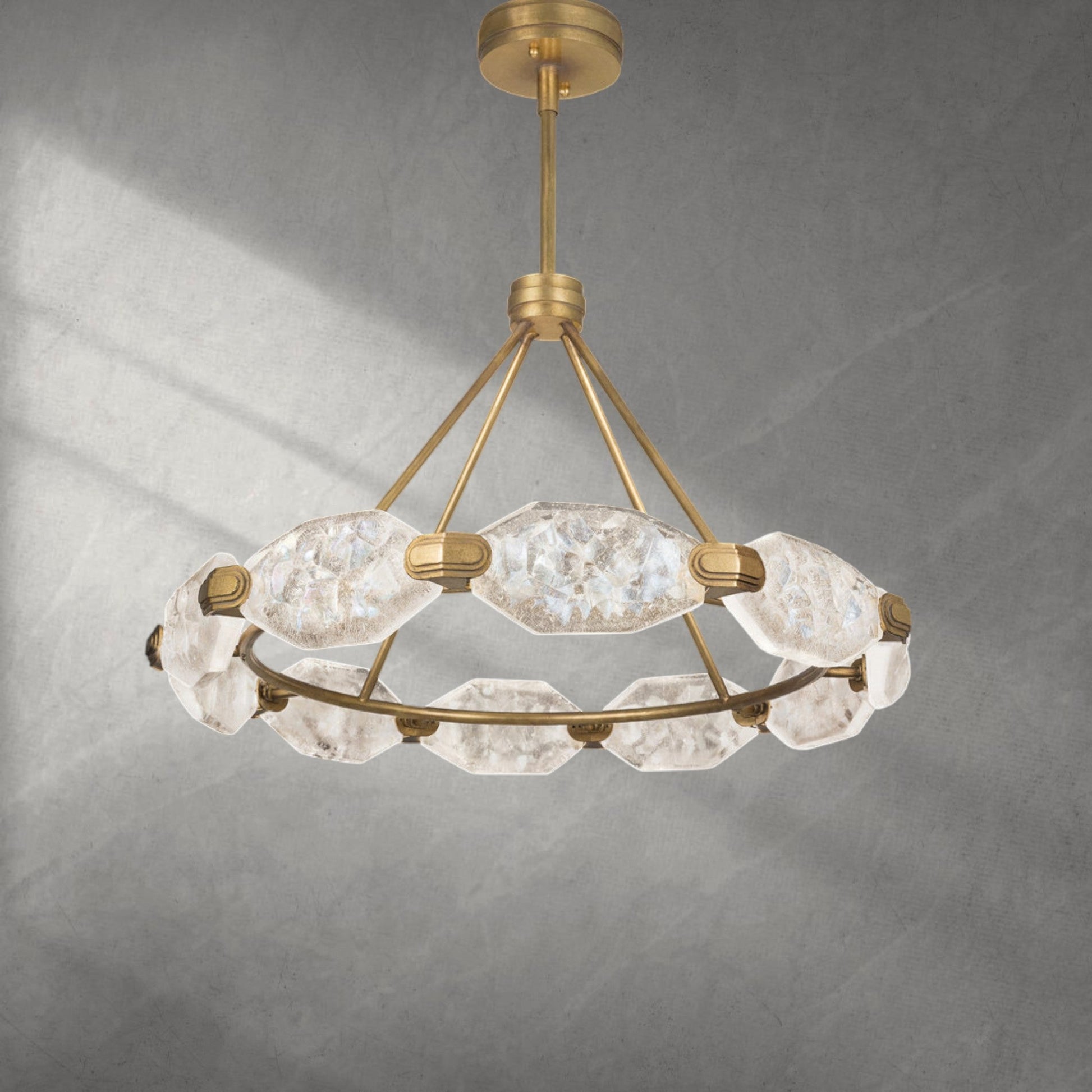 A: Our chandeliers are crafted from premium materials such as brass, glass, and crystal. Each piece is meticulously designed to ensure durability, elegance, and a luxurious finish that enhances your living space.