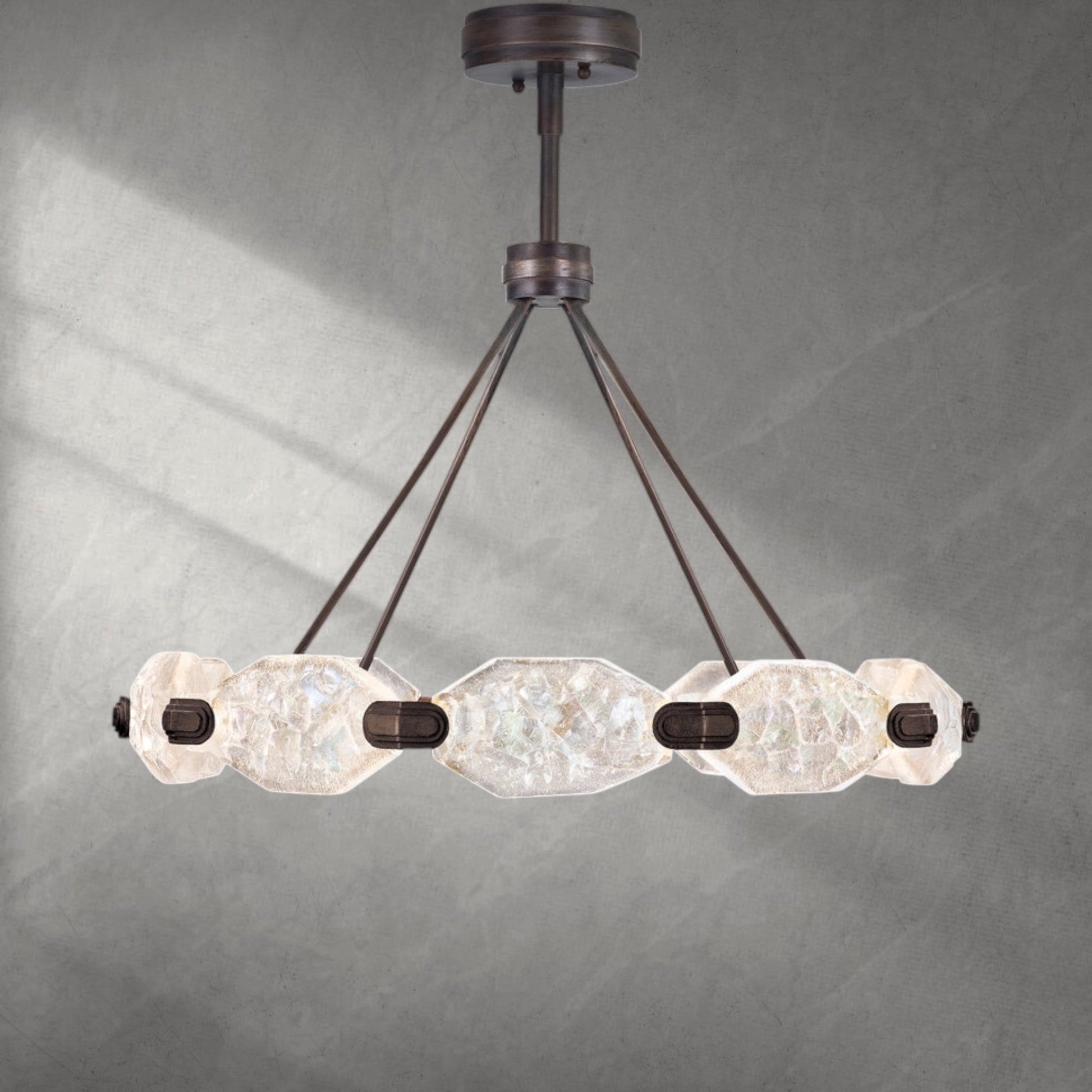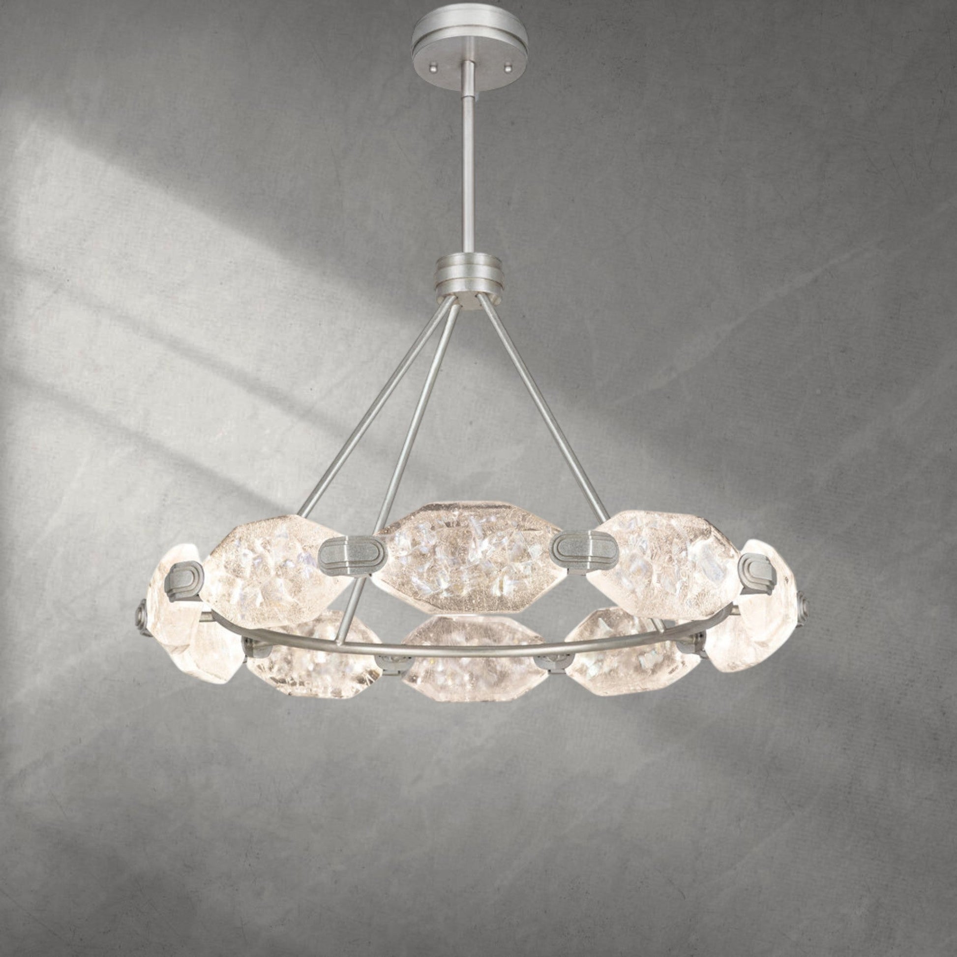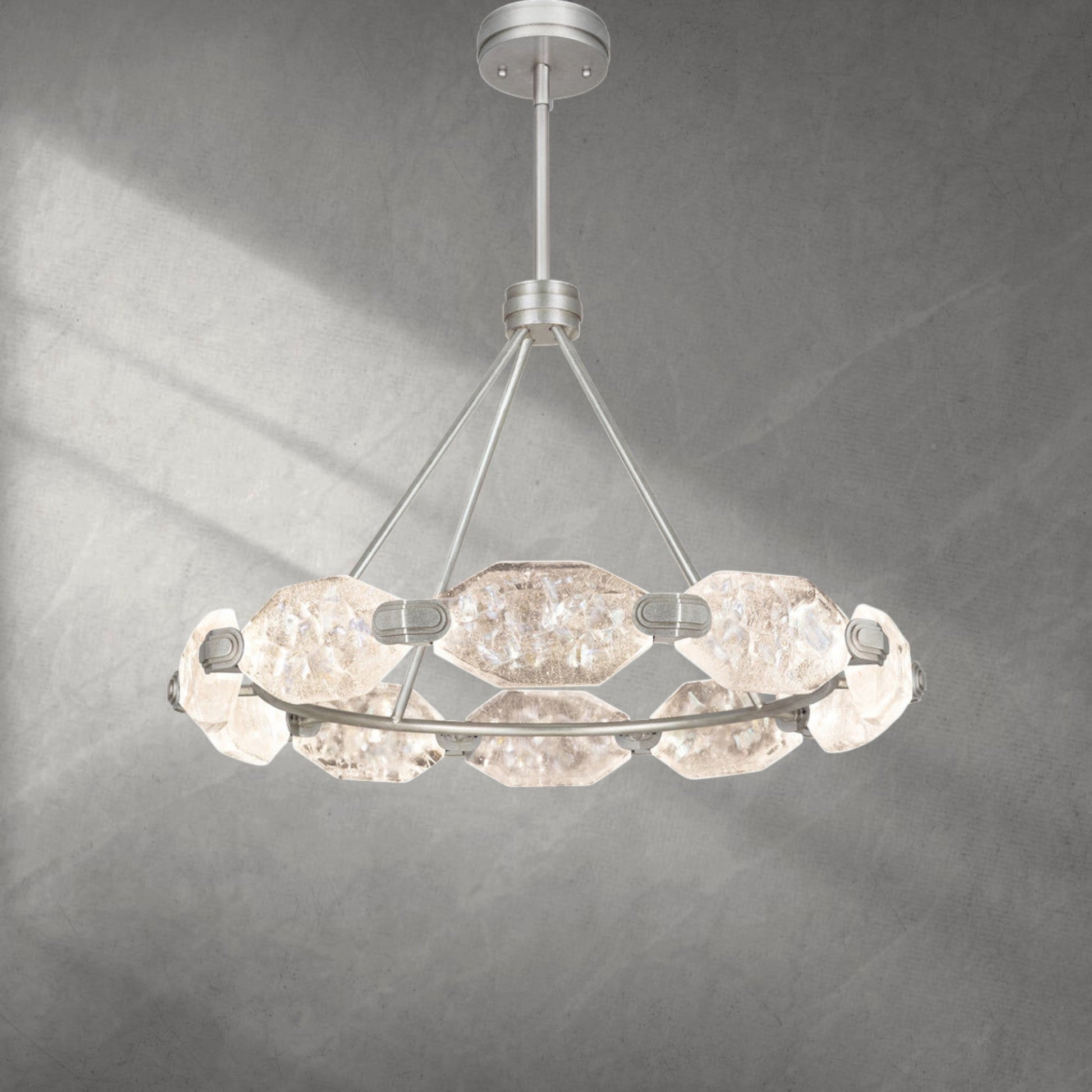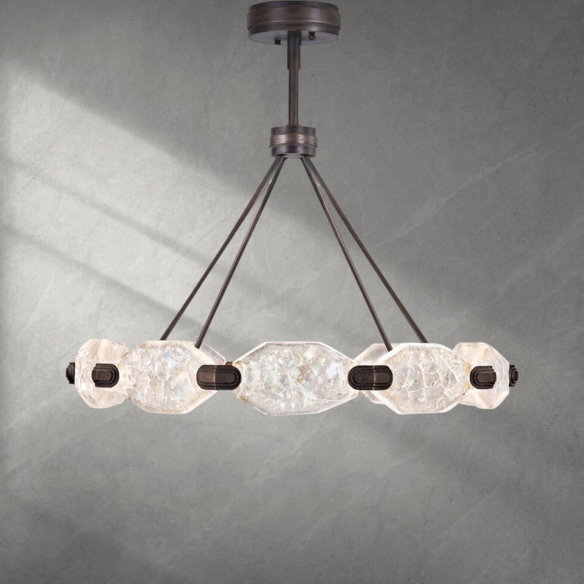 A: Our chandeliers are crafted from premium materials such as brass, glass, and crystal. Each piece is meticulously designed to ensure durability, elegance, and a luxurious finish that enhances your living space.