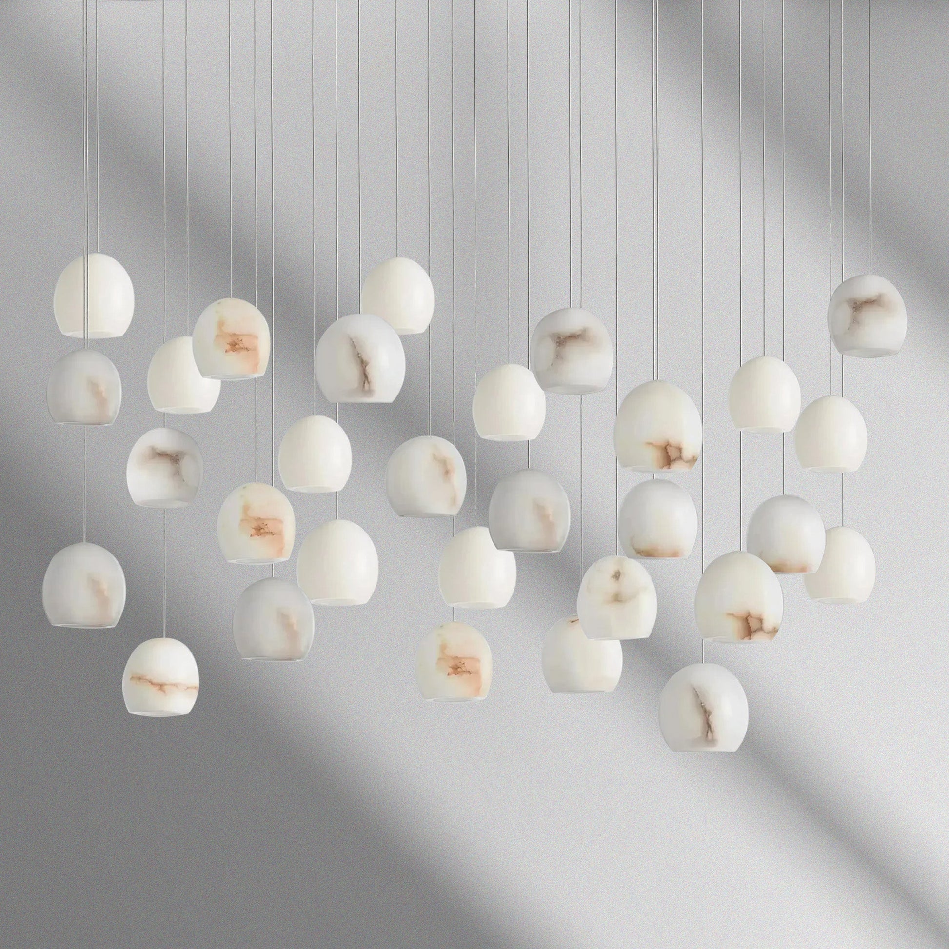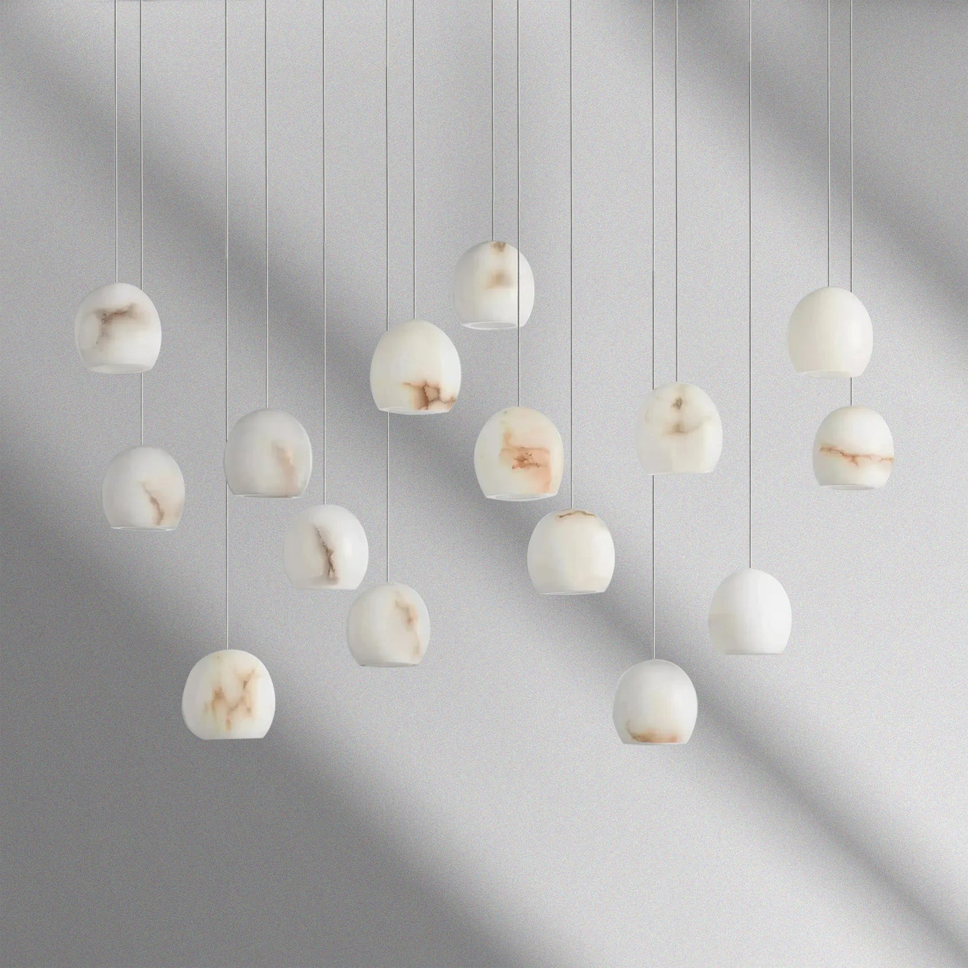Featuring an adjustable cable cascading into a curved shade made from natural alabaster stone, our Arica Collection adds a touch of organic elegance. Designed to highlight the beautiful variations found in natural alabaster, each luminous shade showcases delicate swirls of unique veining making each pendant truly one-of-a-kind.