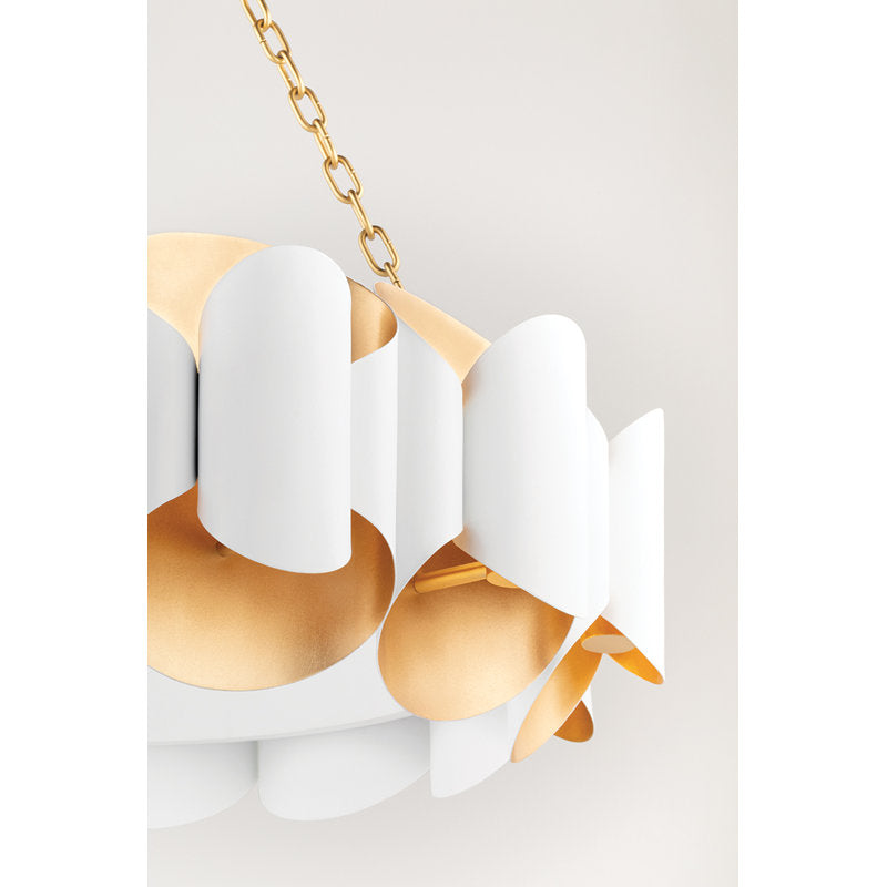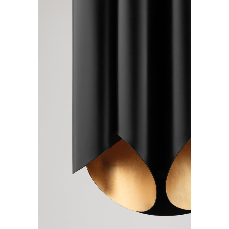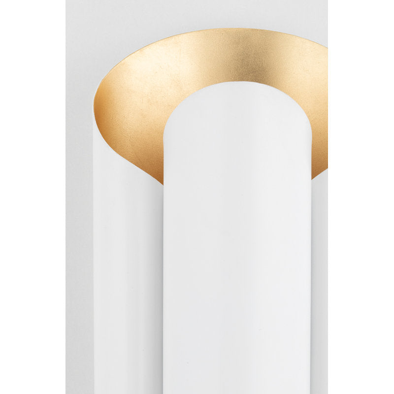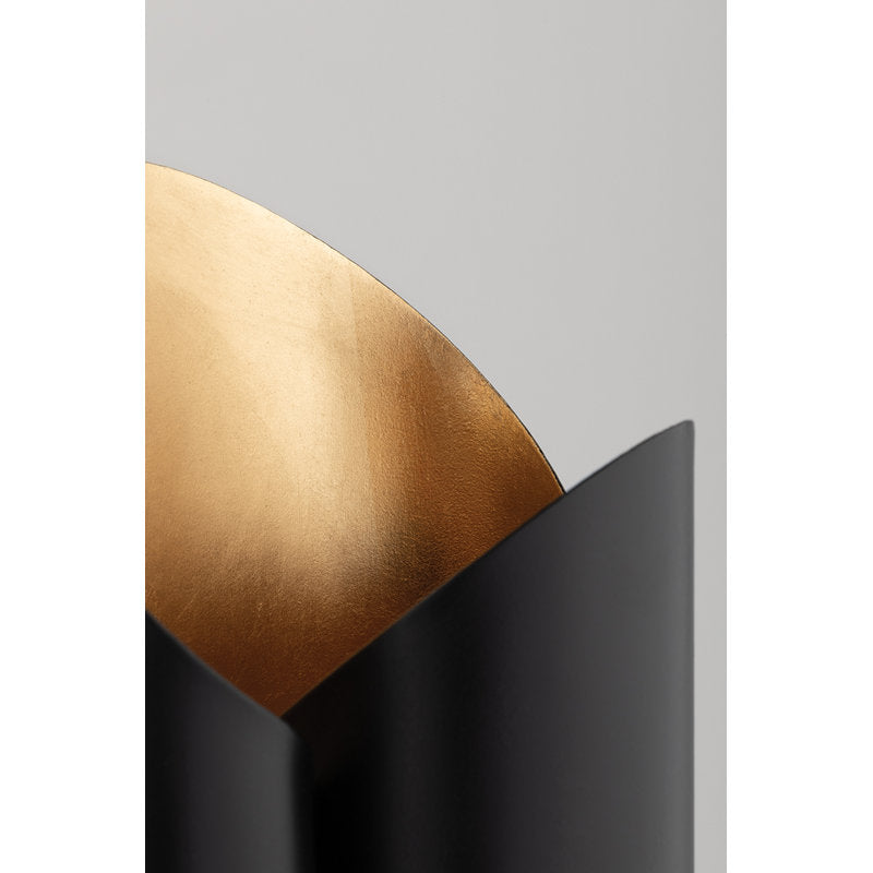 This 1960s inspired design gives a nod to the past while still remaining fabulously current. Every shade has a hand-applied gold leaf finish on the inside and two bulbs to casts a golden glow from both above and below. Available in soft black or soft white.