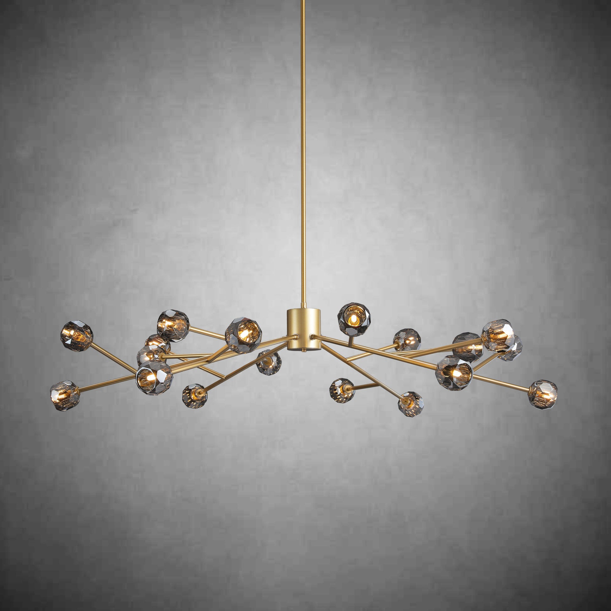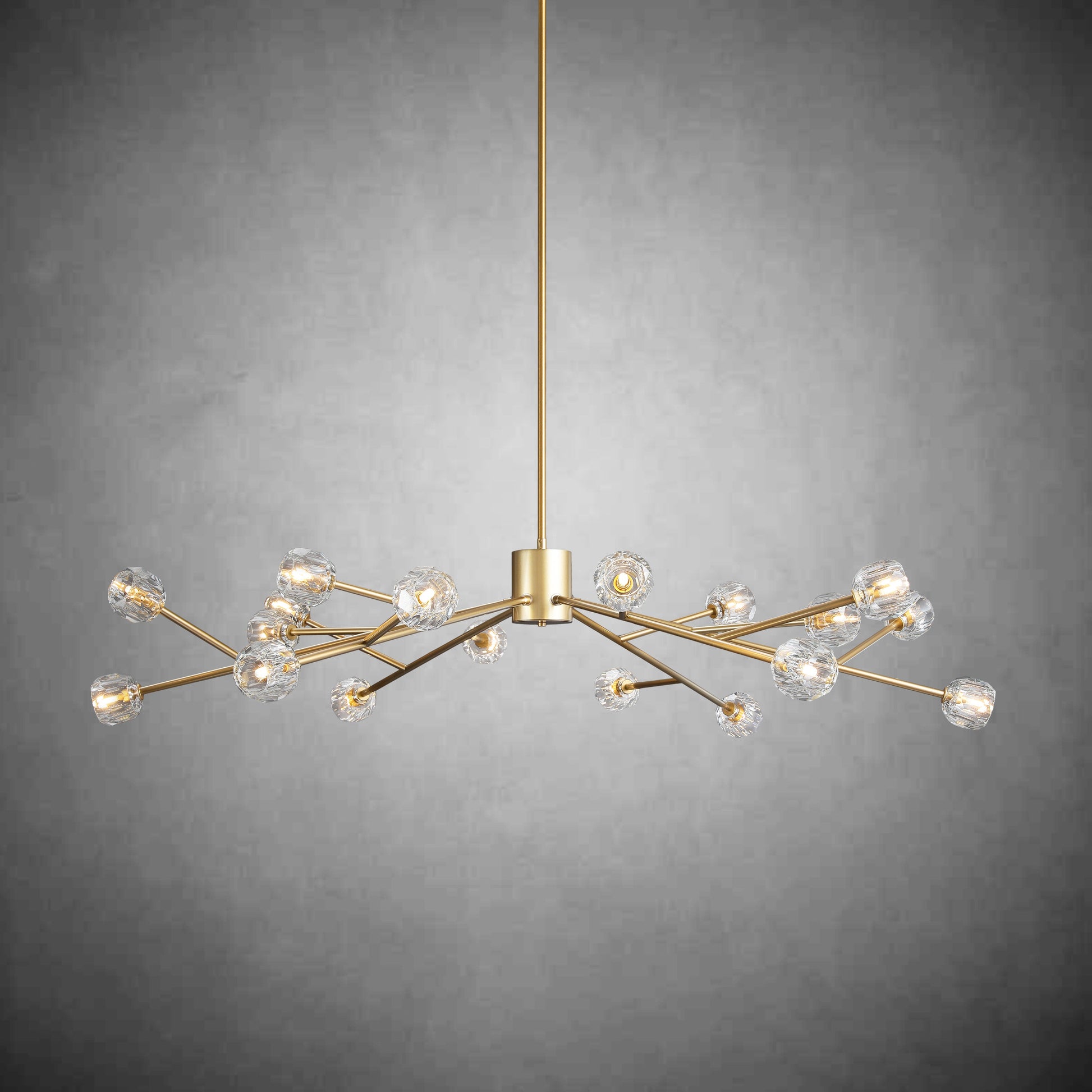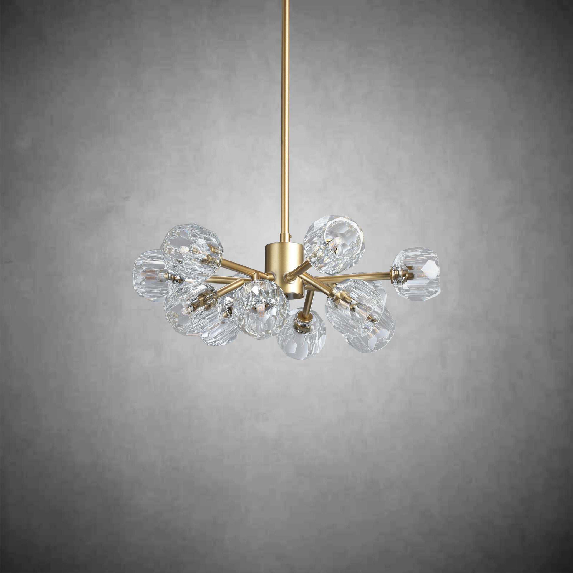 A: Our chandeliers are crafted from premium materials such as brass, glass, and crystal. Each piece is meticulously designed to ensure durability, elegance, and a luxurious finish that enhances your living space.