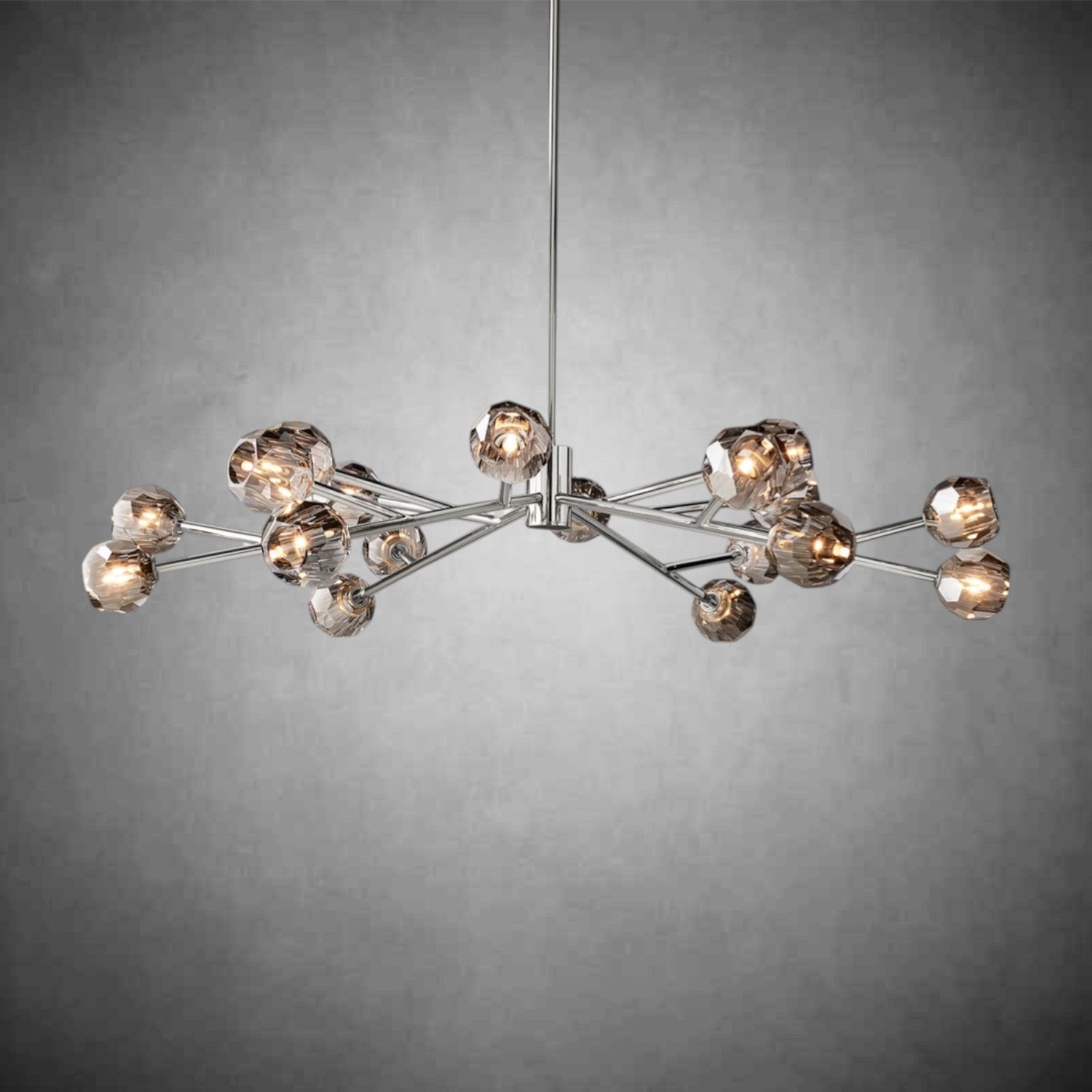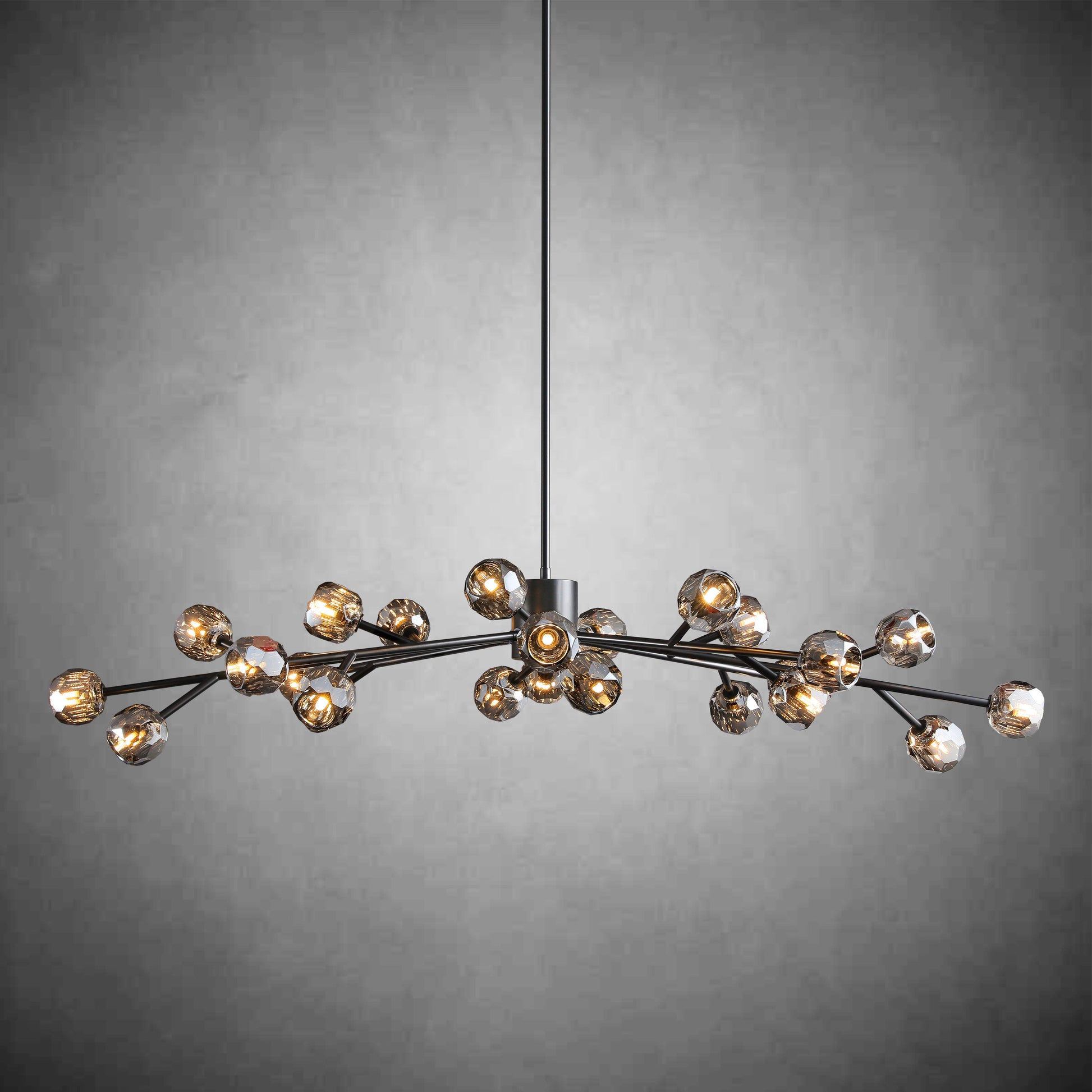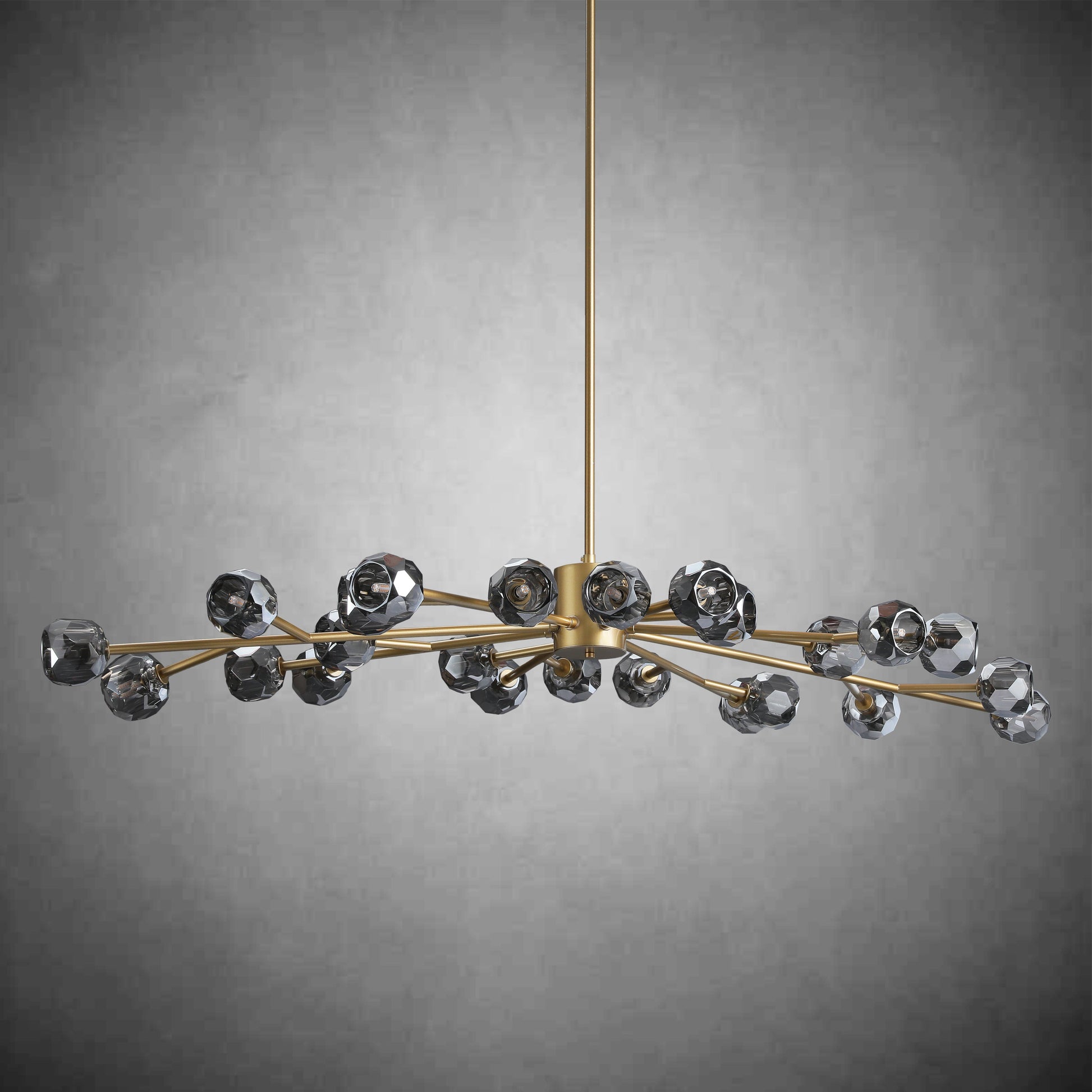A: Our chandeliers are crafted from premium materials such as brass, glass, and crystal. Each piece is meticulously designed to ensure durability, elegance, and a luxurious finish that enhances your living space.