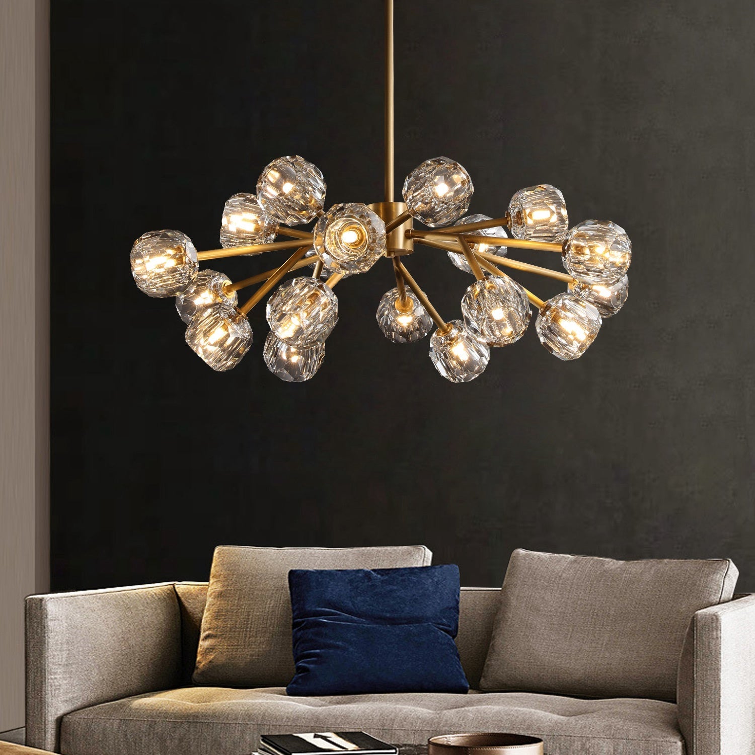 Each exquisite crystal ball combines high-quality copper elements to show luxury. Each crystal ball is carefully polished and cut by workers with many years of manual experience. The chassis and accessories are made of solid brass. The face of the crystal ball reflects warm light. It highlights the artistic flavor of this kind of lighting and the delicacy of manual lighting.