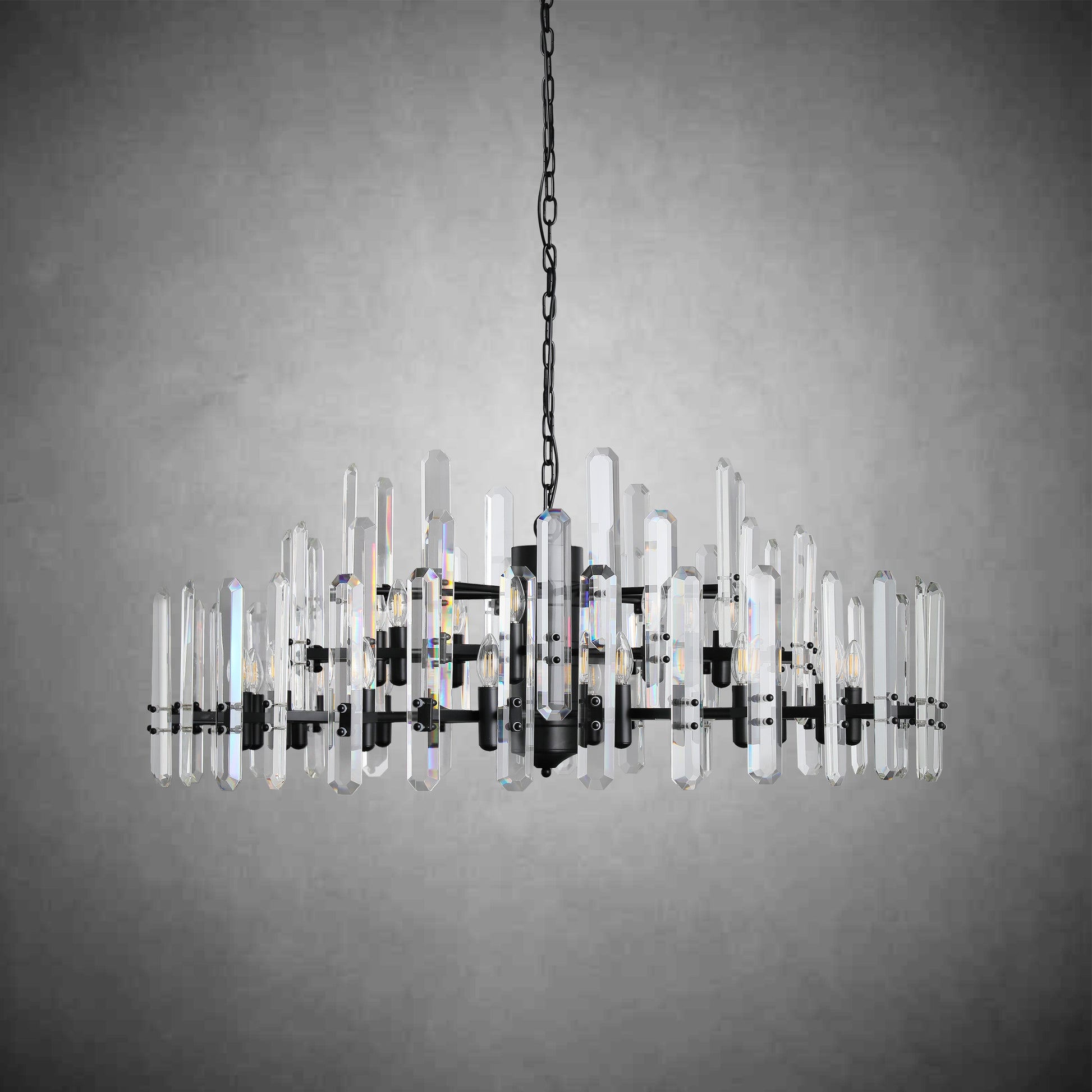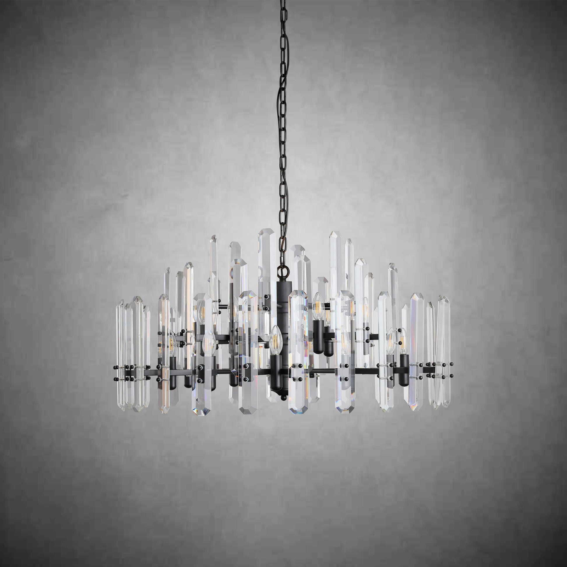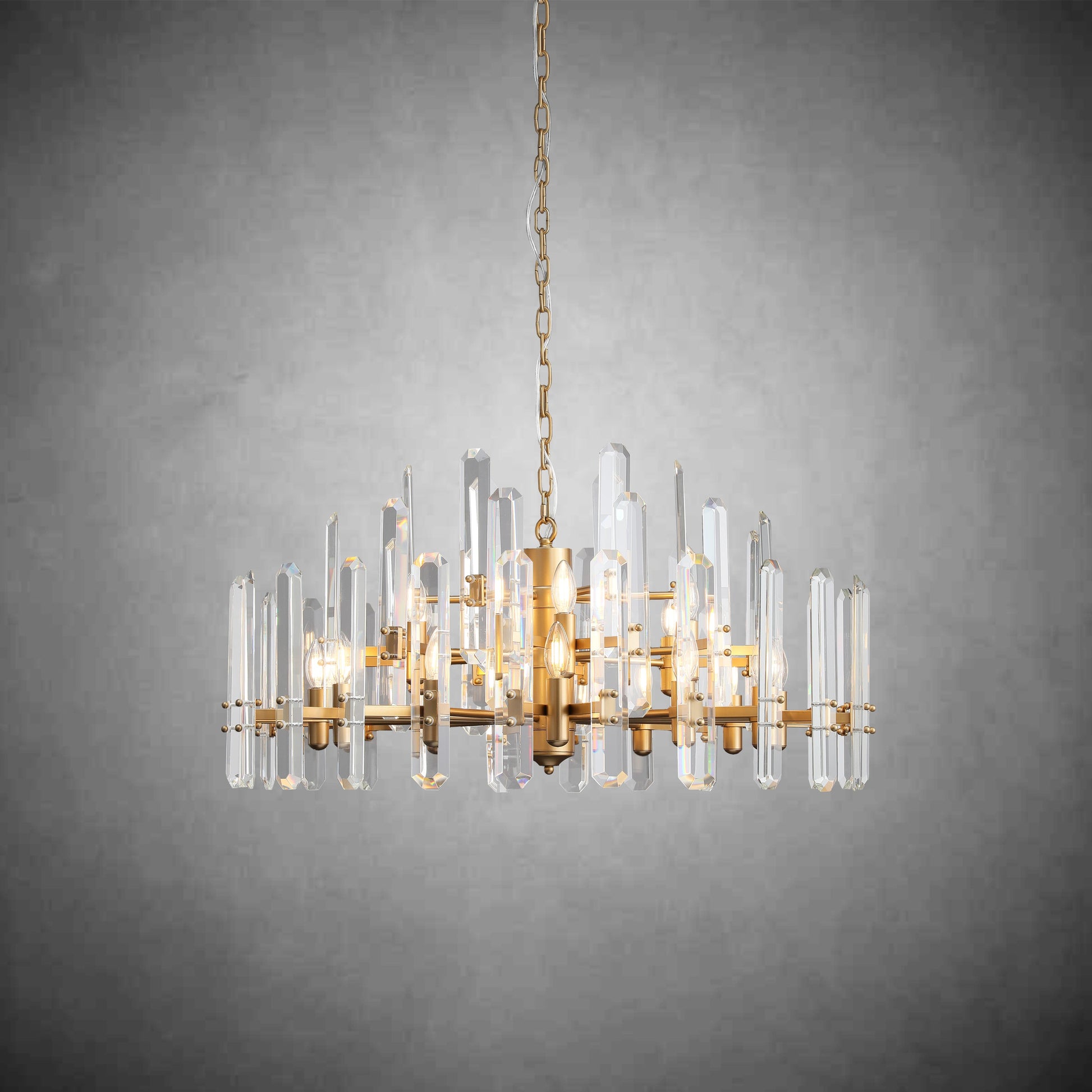 A: Our chandeliers are crafted from premium materials such as brass, glass, and crystal. Each piece is meticulously designed to ensure durability, elegance, and a luxurious finish that enhances your living space.