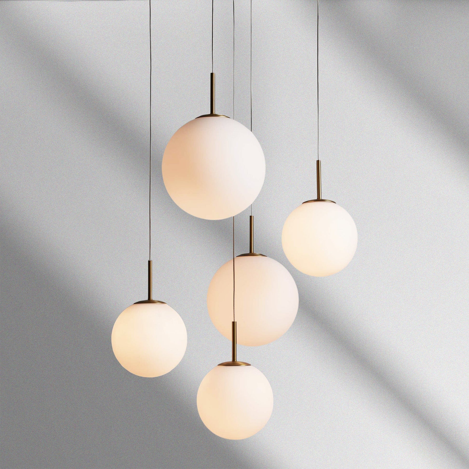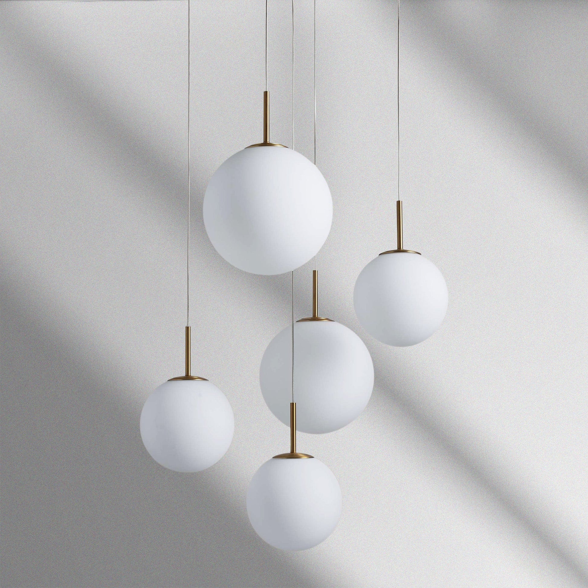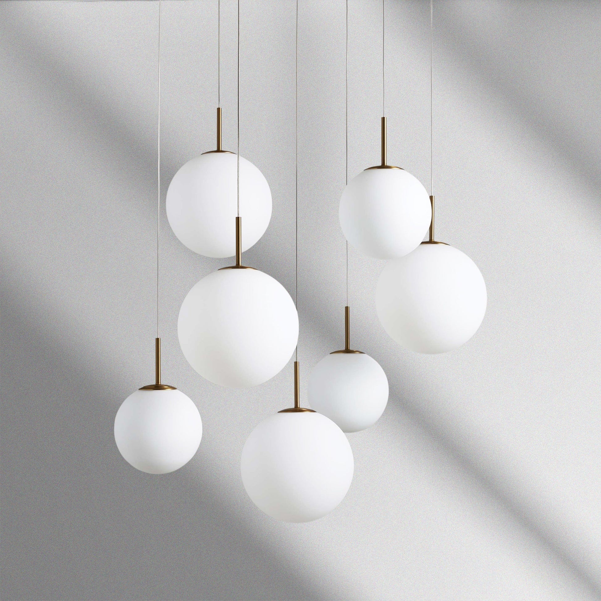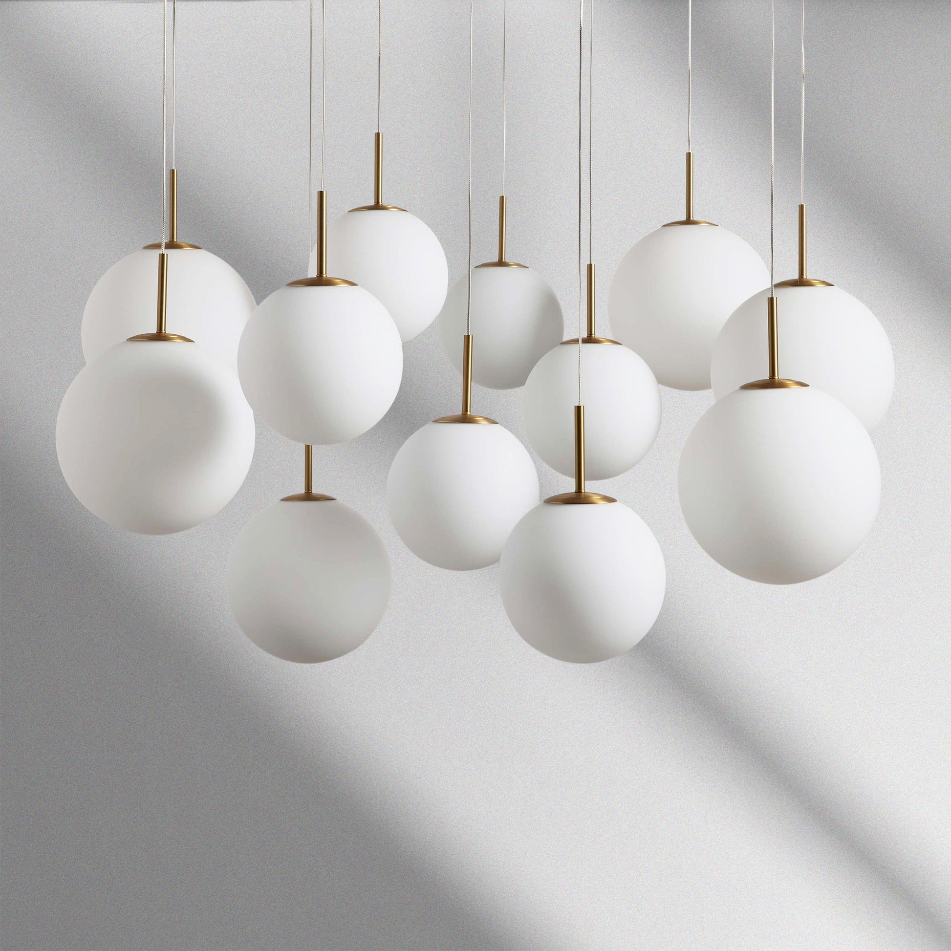 Expertly crafted glass globes drop from modern satin brass hardware in our Casen Lighting Collection. Each globe is mouth blown by our artisan partners and features an integrated LED light that illuminates the glass from within, bringing a unique, organic touch into your home.