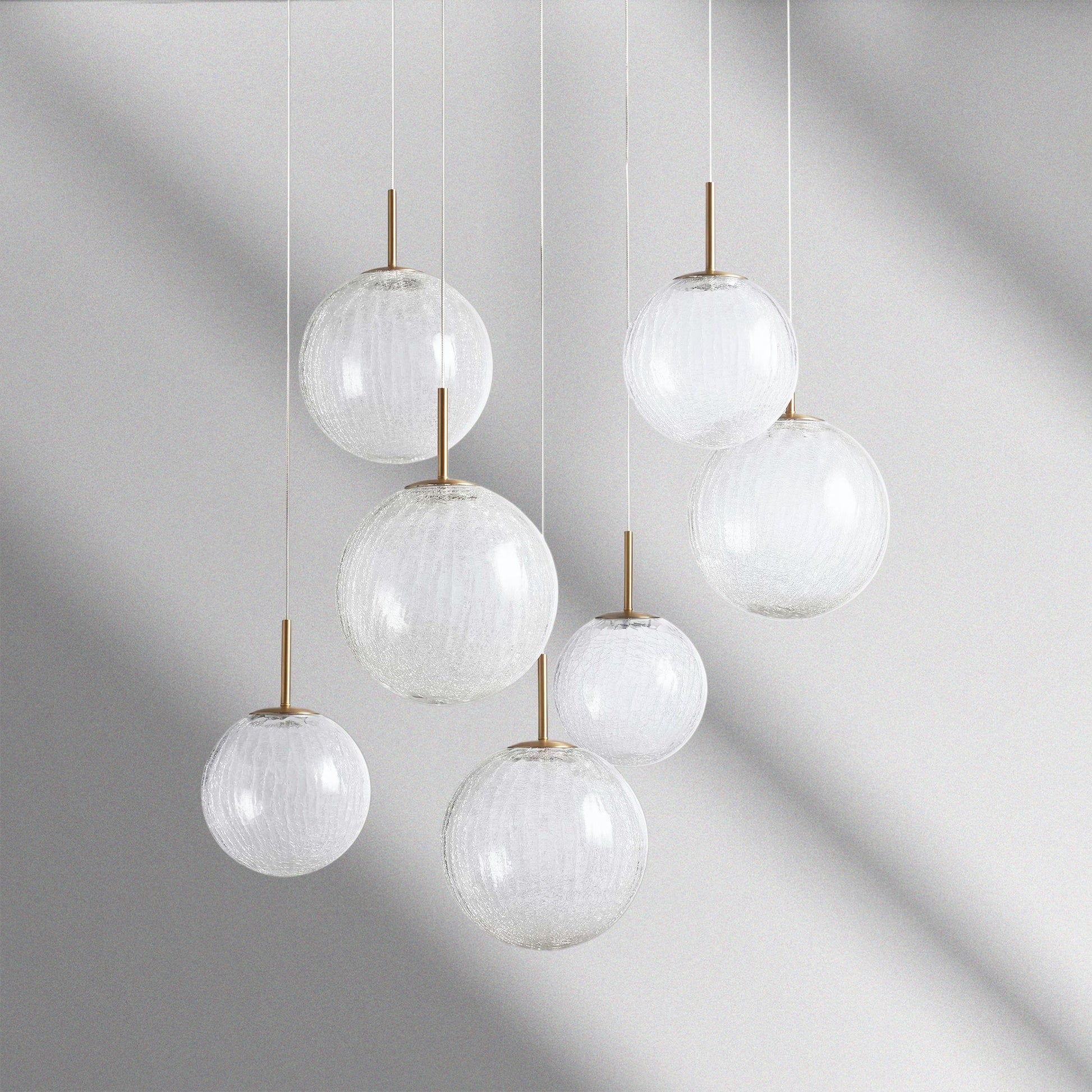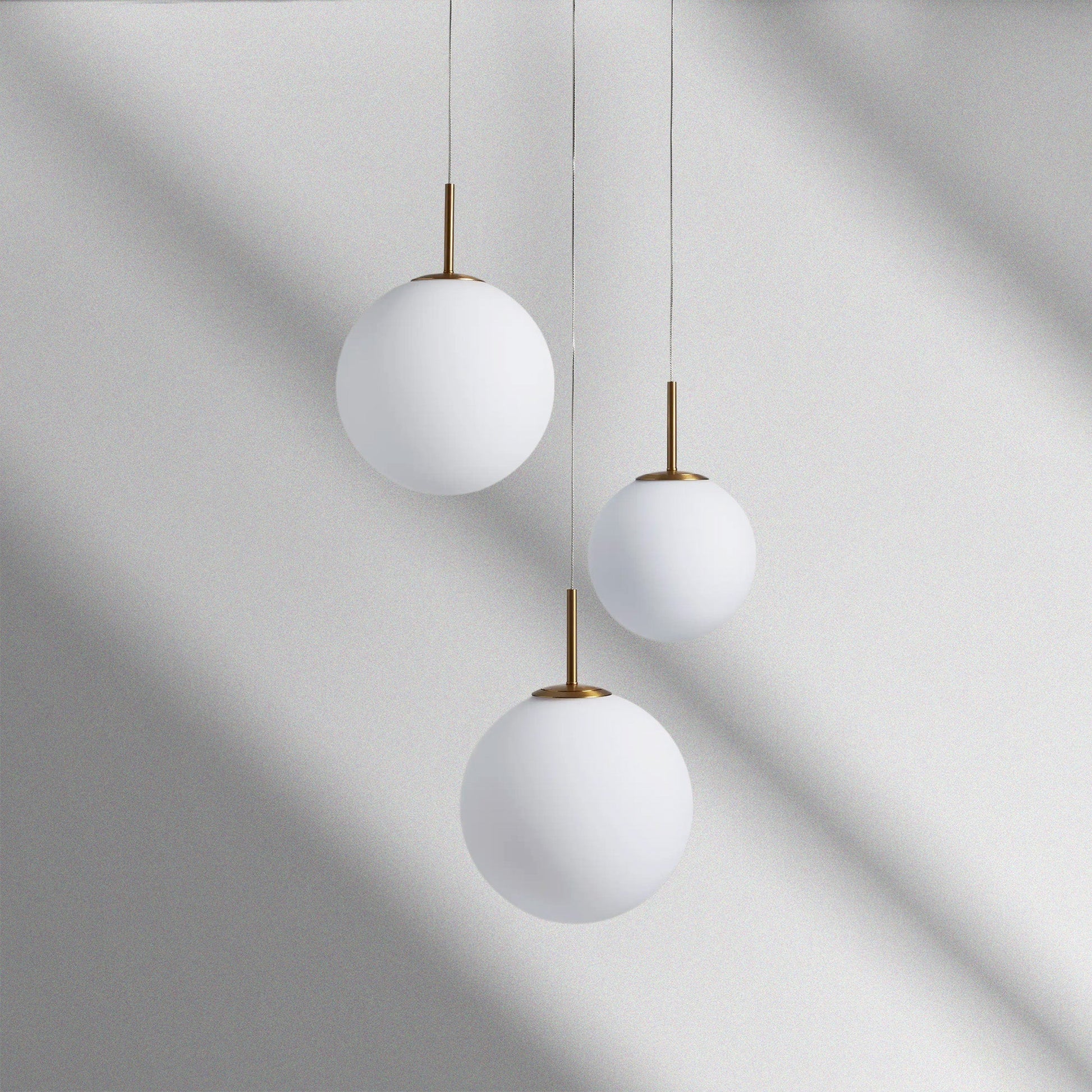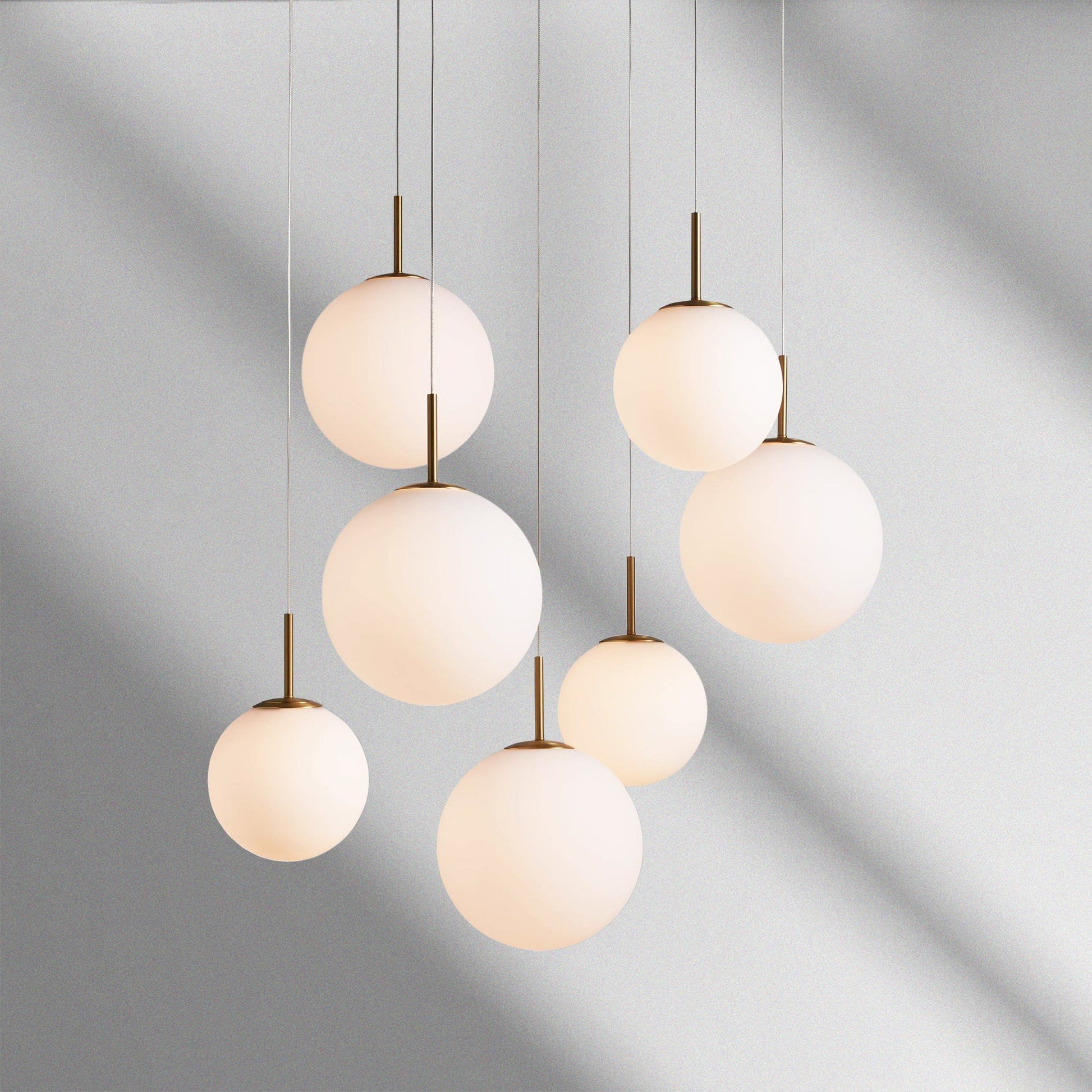 Expertly crafted glass globes drop from modern satin brass hardware in our Casen Lighting Collection. Each globe is mouth blown by our artisan partners and features an integrated LED light that illuminates the glass from within, bringing a unique, organic touch into your home.