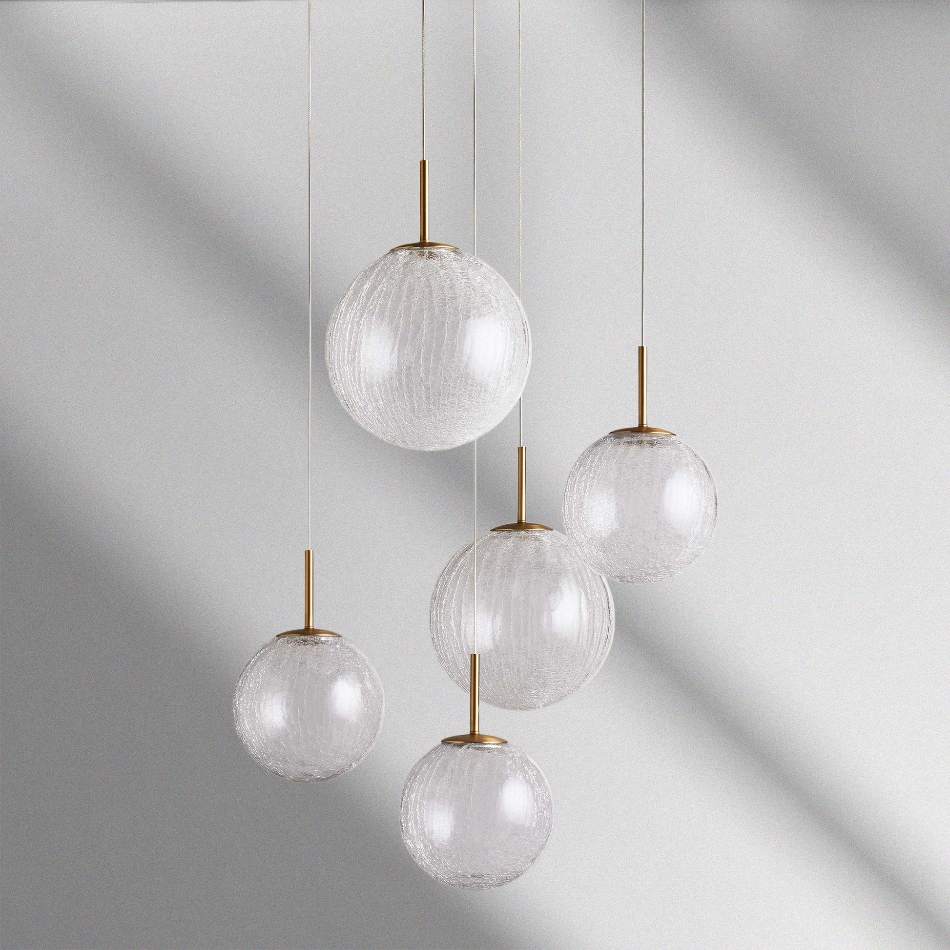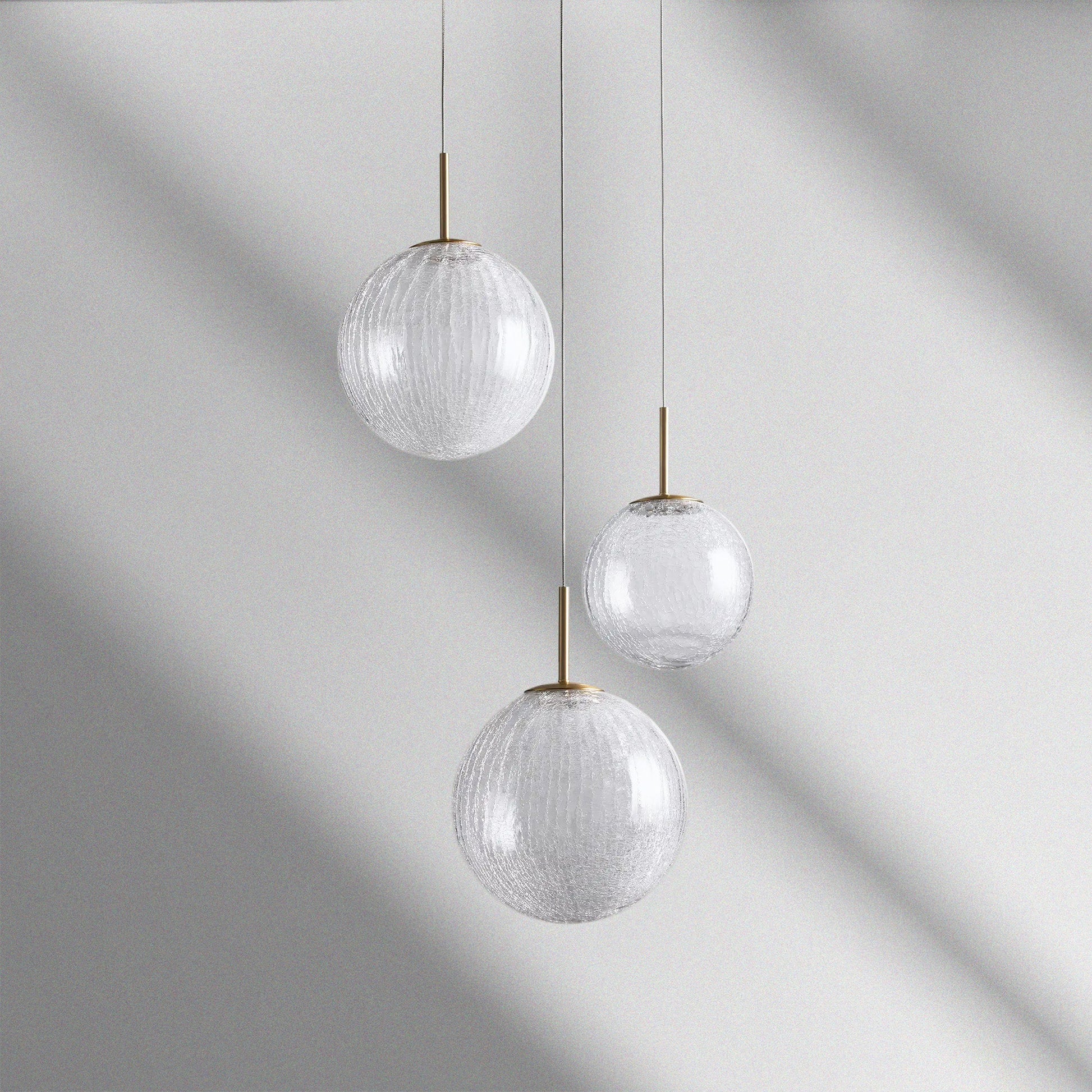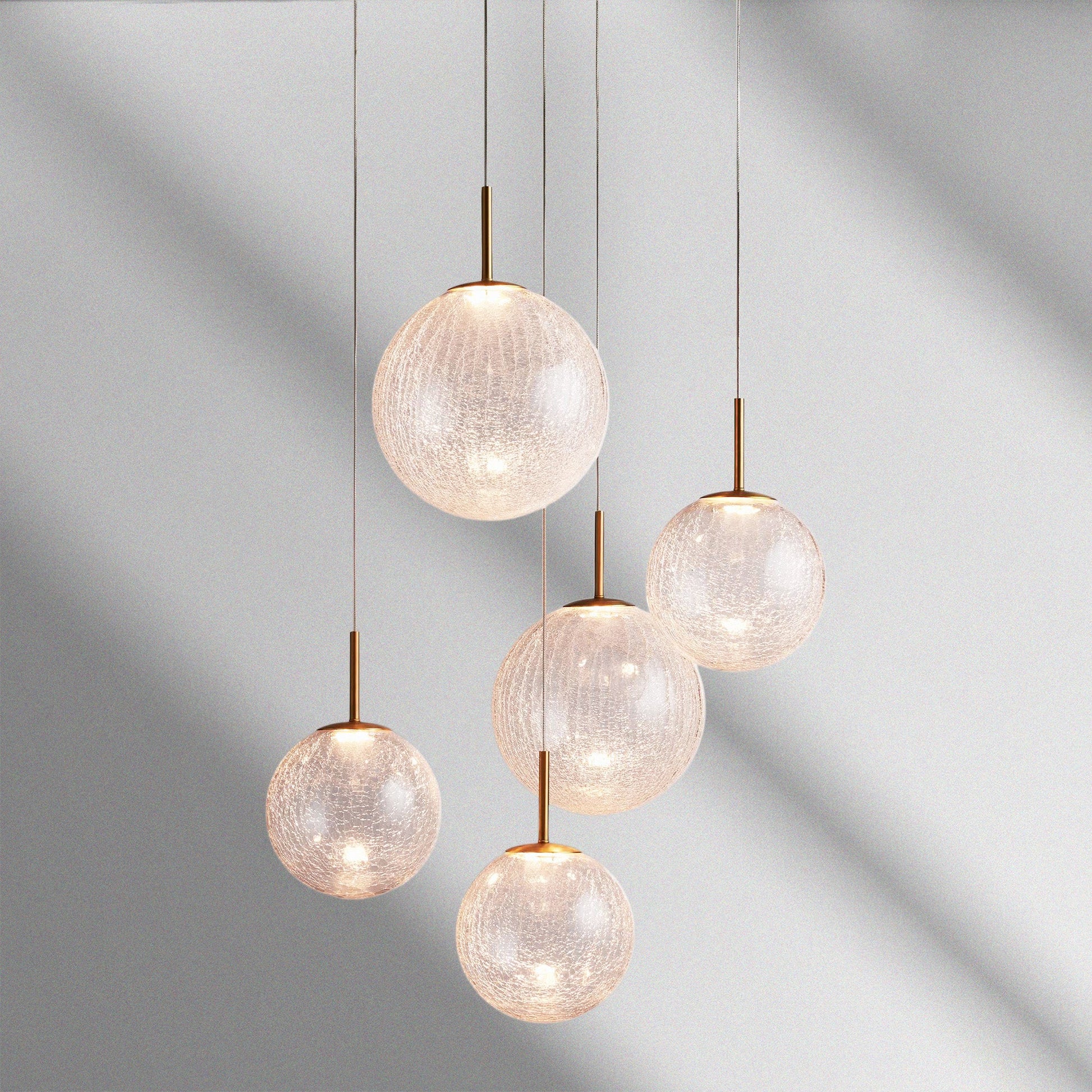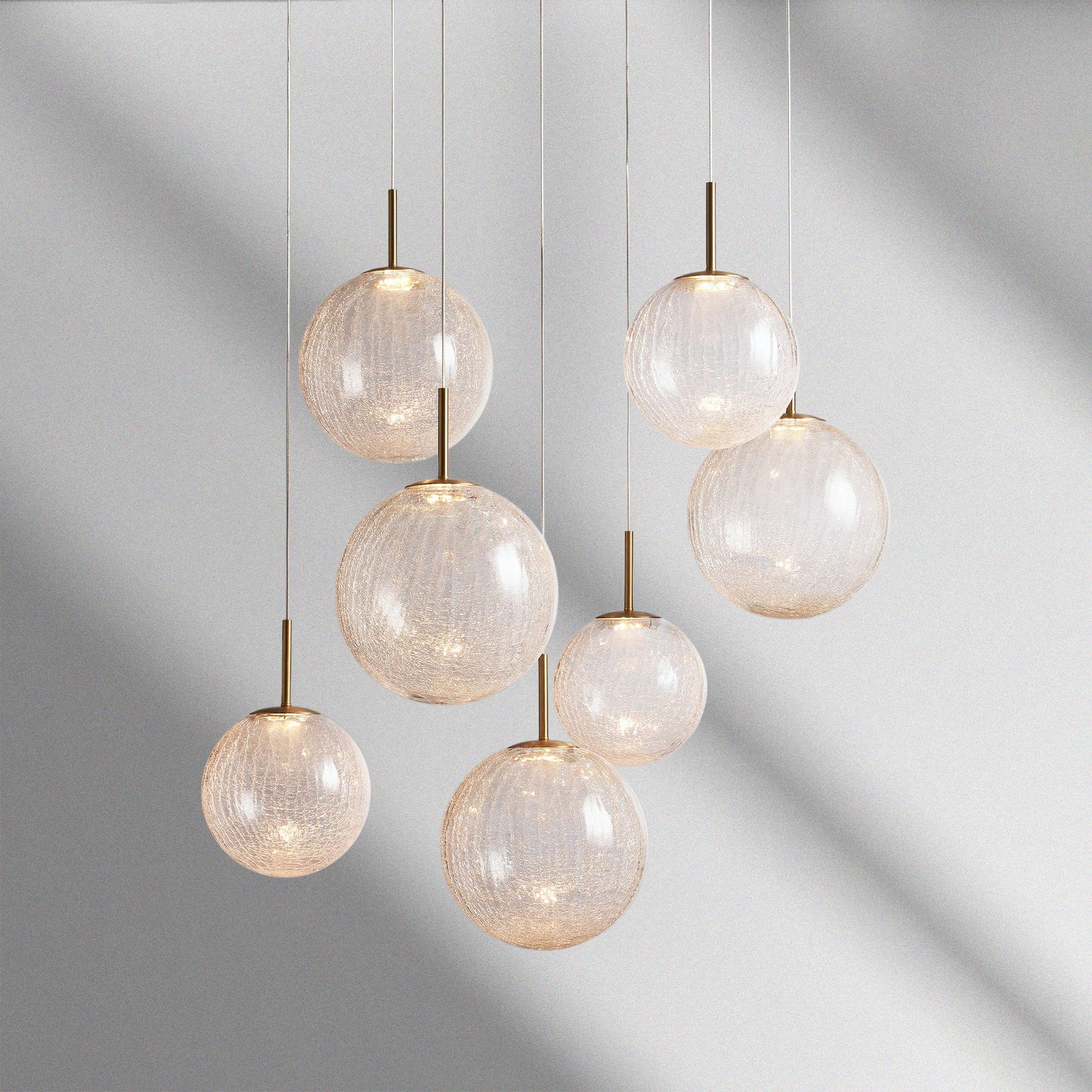 Expertly crafted glass globes drop from modern satin brass hardware in our Casen Lighting Collection. Each globe is mouth blown by our artisan partners and features an integrated LED light that illuminates the glass from within, bringing a unique, organic touch into your home.