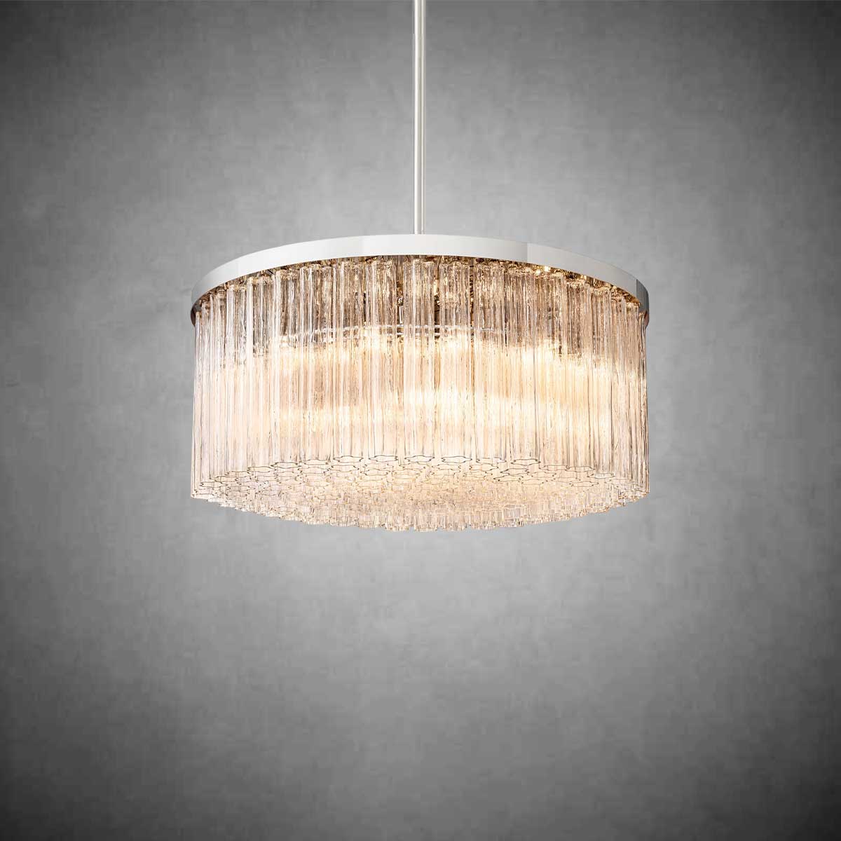 A: Our chandeliers are crafted from premium materials such as brass, glass, and crystal. Each piece is meticulously designed to ensure durability, elegance, and a luxurious finish that enhances your living space.