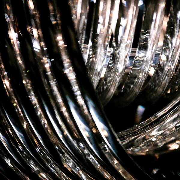 Inspired by late 20th century Italian design, the powerful Crossglass pendant features sweeping arcs of crystal clear glass overlapped on an octagonal base. The curved shapes are achieved through extruding the glass through a hollow die, a process invented in the 1800s. A bold and captivating way to add sparkle and glow to a room.