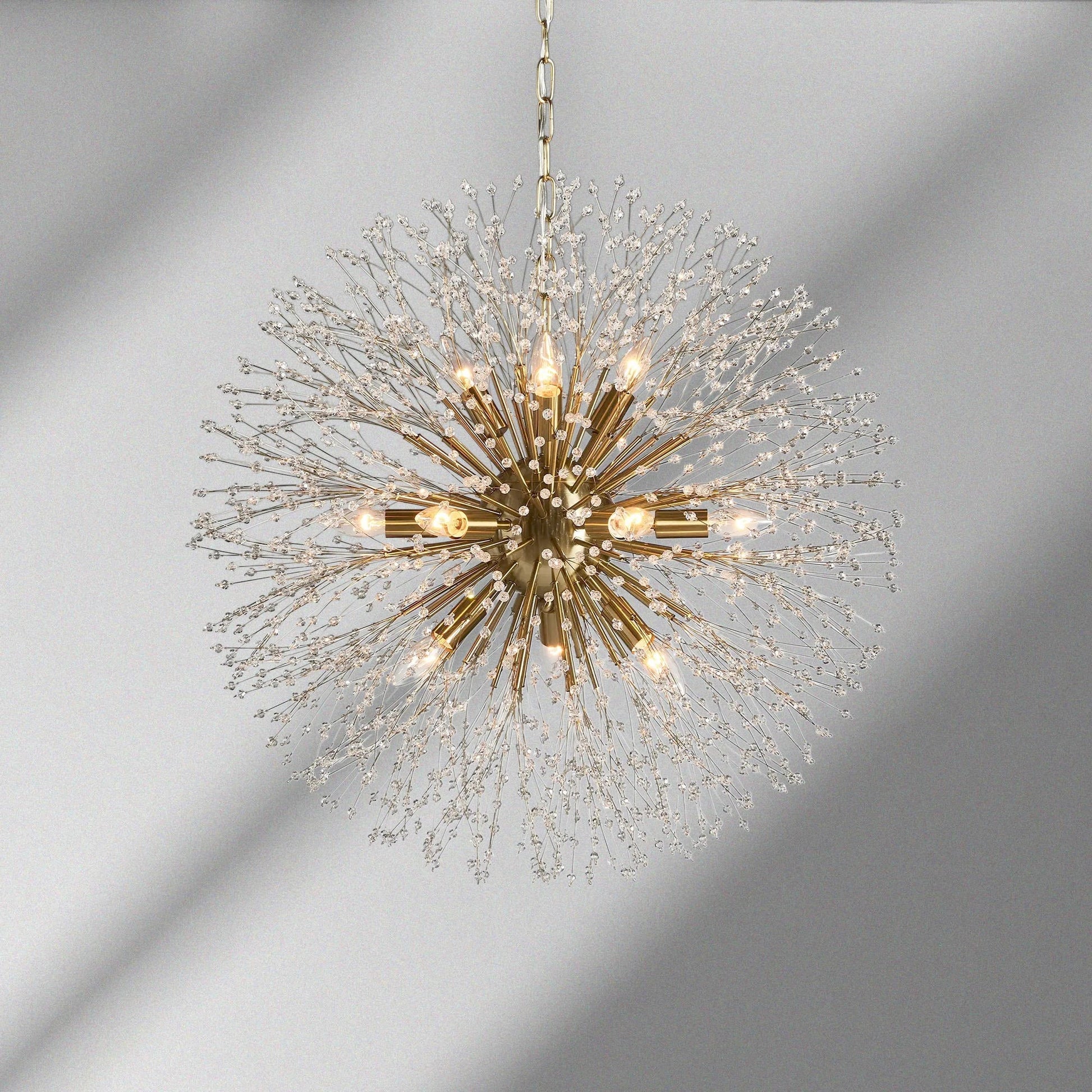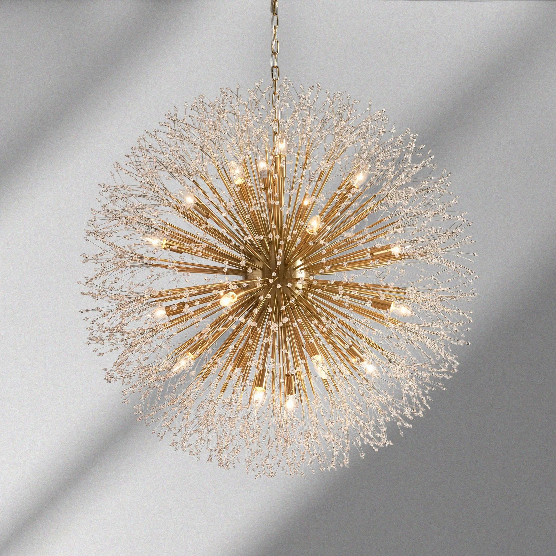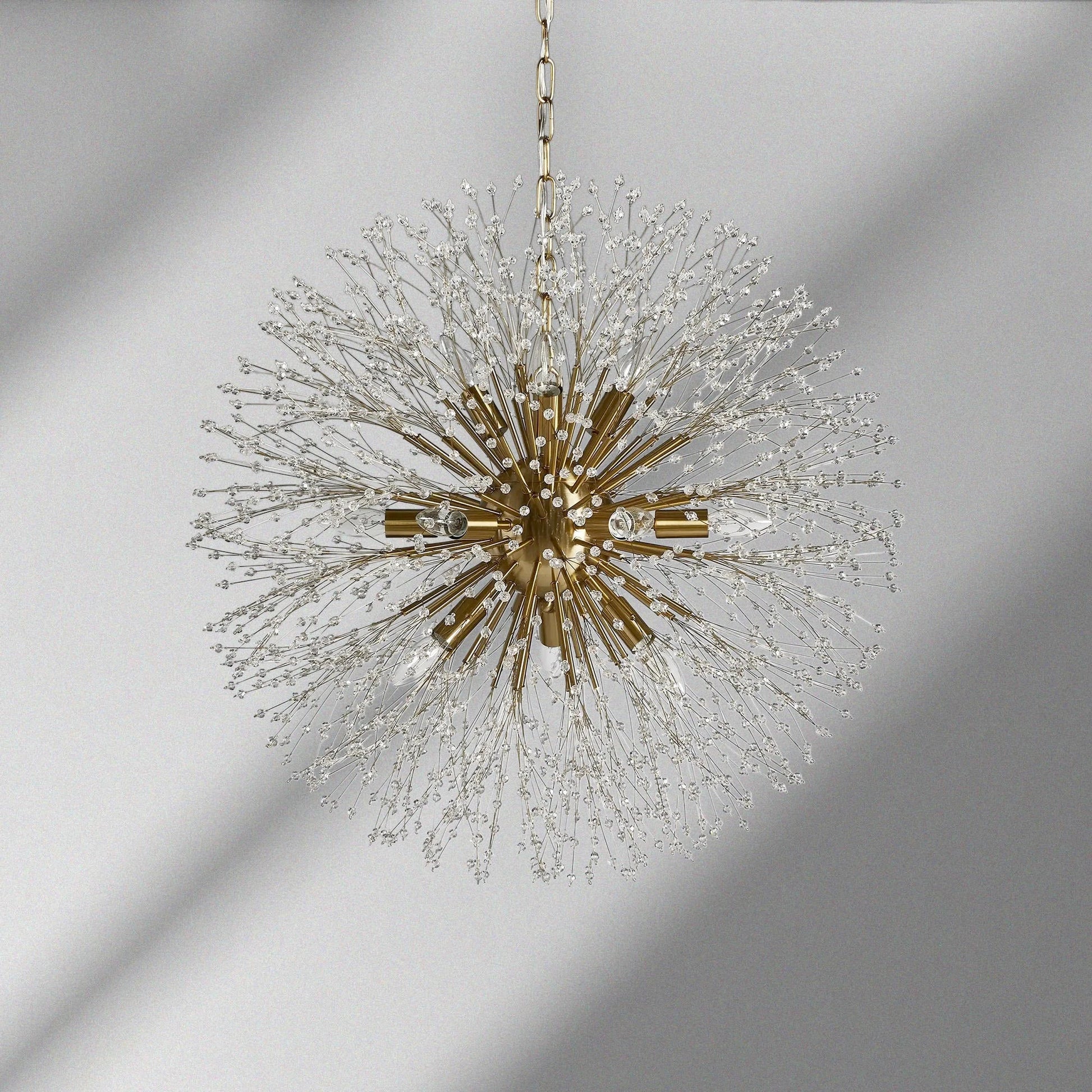 A: Our chandeliers are crafted from premium materials such as brass, glass, and crystal. Each piece is meticulously designed to ensure durability, elegance, and a luxurious finish that enhances your living space.