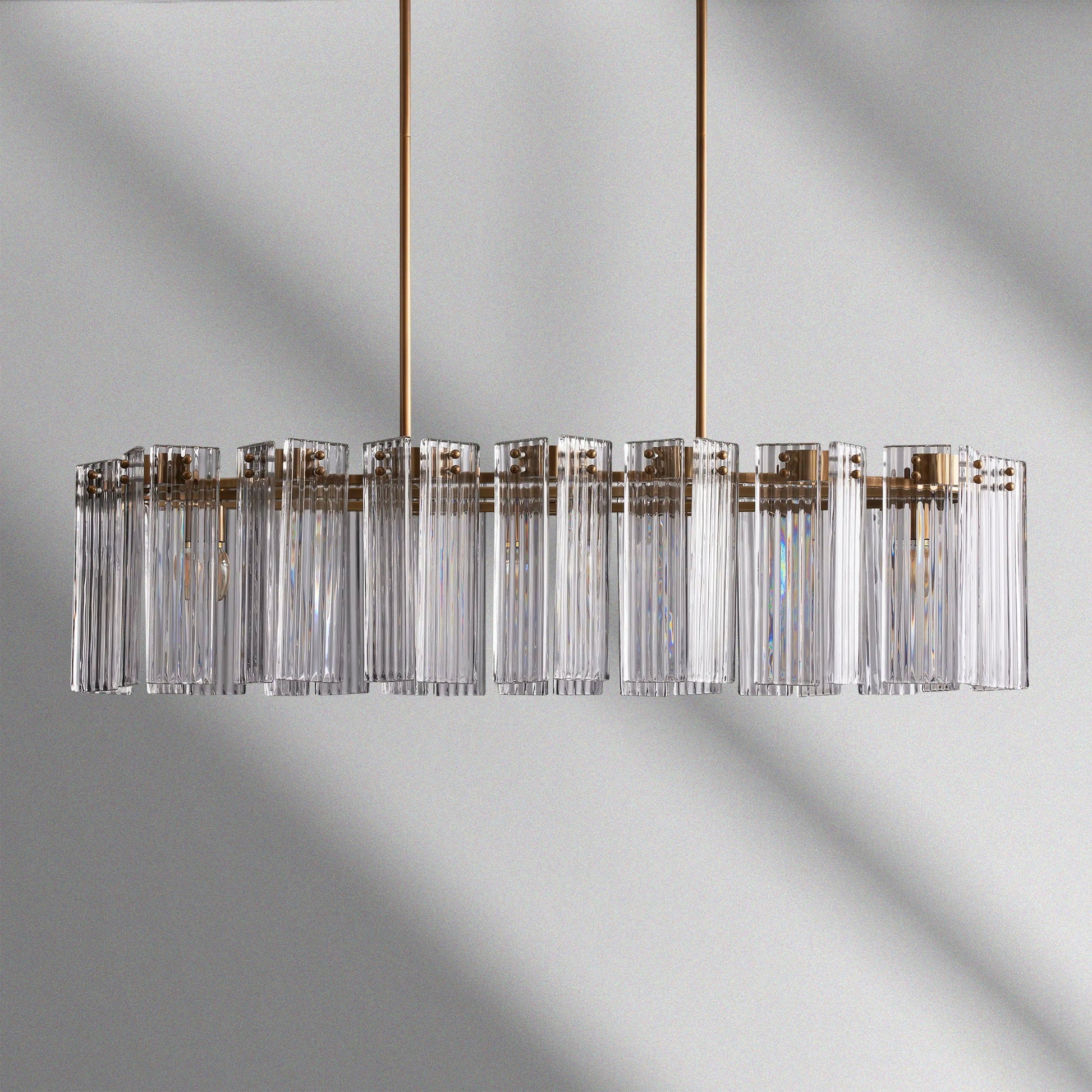 A fresh take on a traditional silhouette, our Delsie Collection radiates old Hollywood glamour. Crafted from reeded glass panels elegantly arranged around a steel frame, Delsie creates dramatic ambiance in any space.
