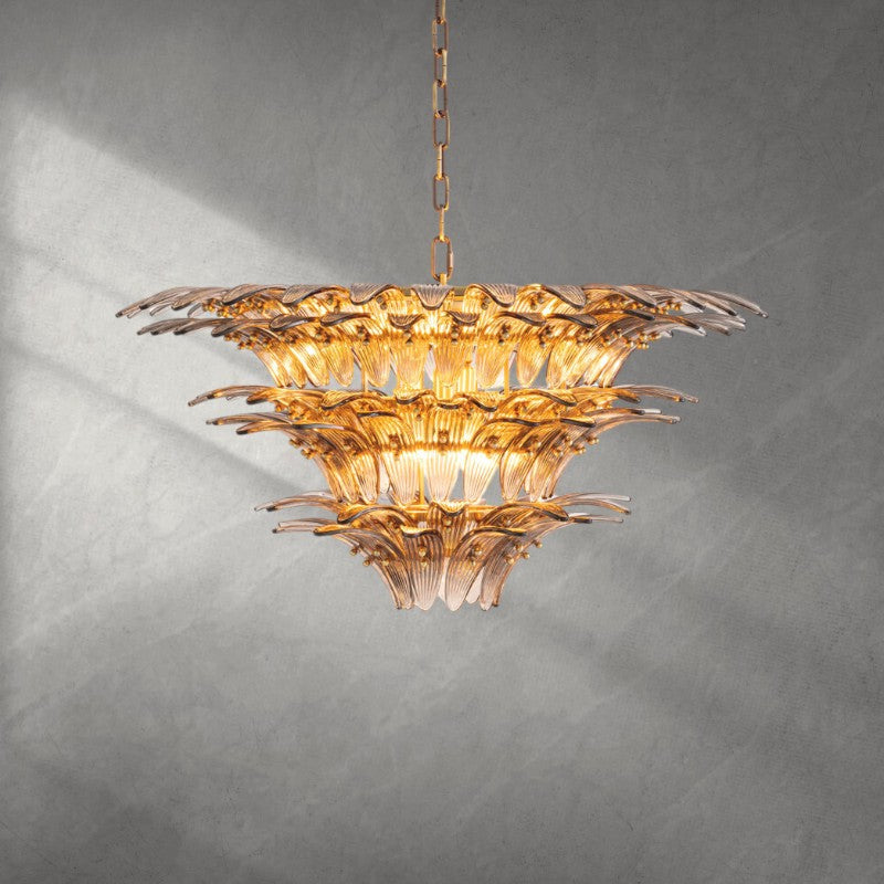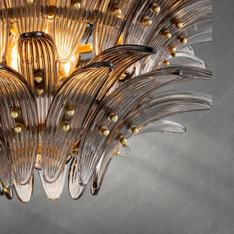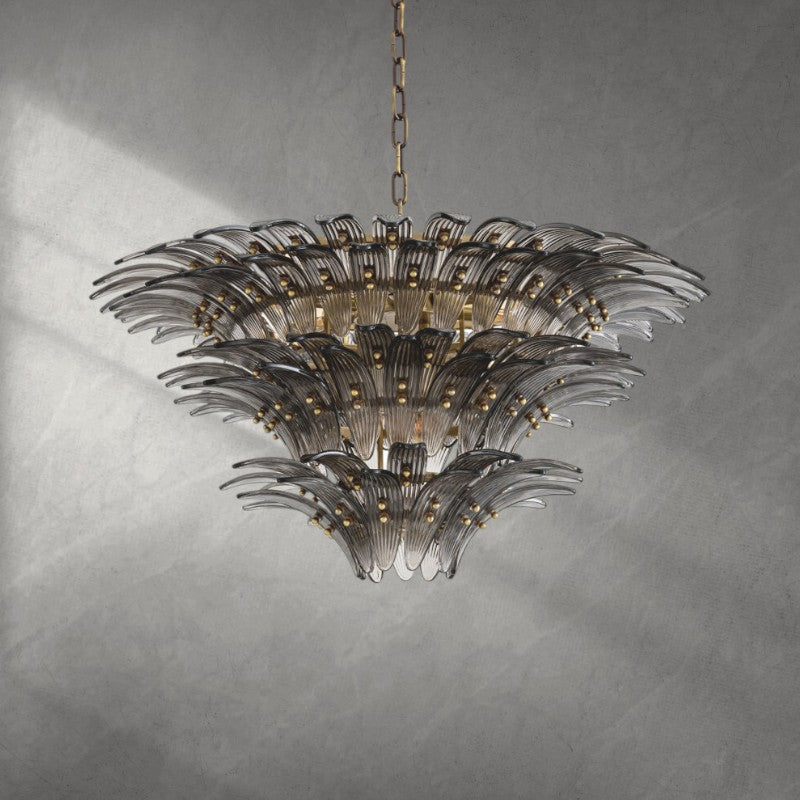 Inspired by the magic of nature, this chandelier creates an energetic display of brilliance and shadows. Its three tiers feature overlapping decorations of ribbed smoked glass, casting a captivating glow. This piece adds a touch of sophisticated drama to any room, turning your space into a dazzling spectacle. It's truly a luminous work of art!