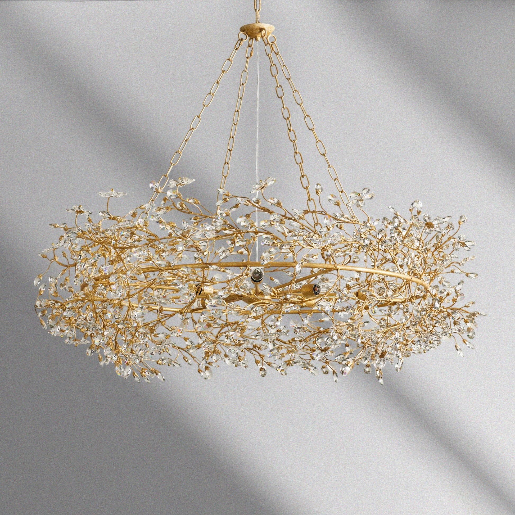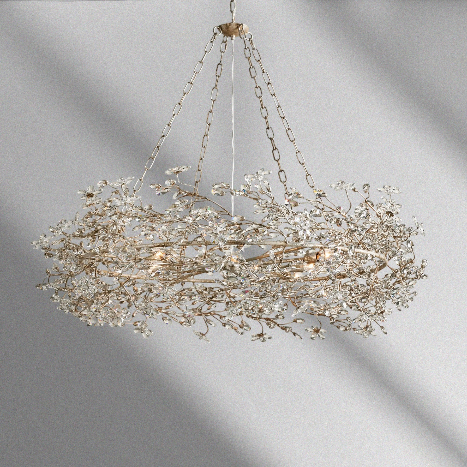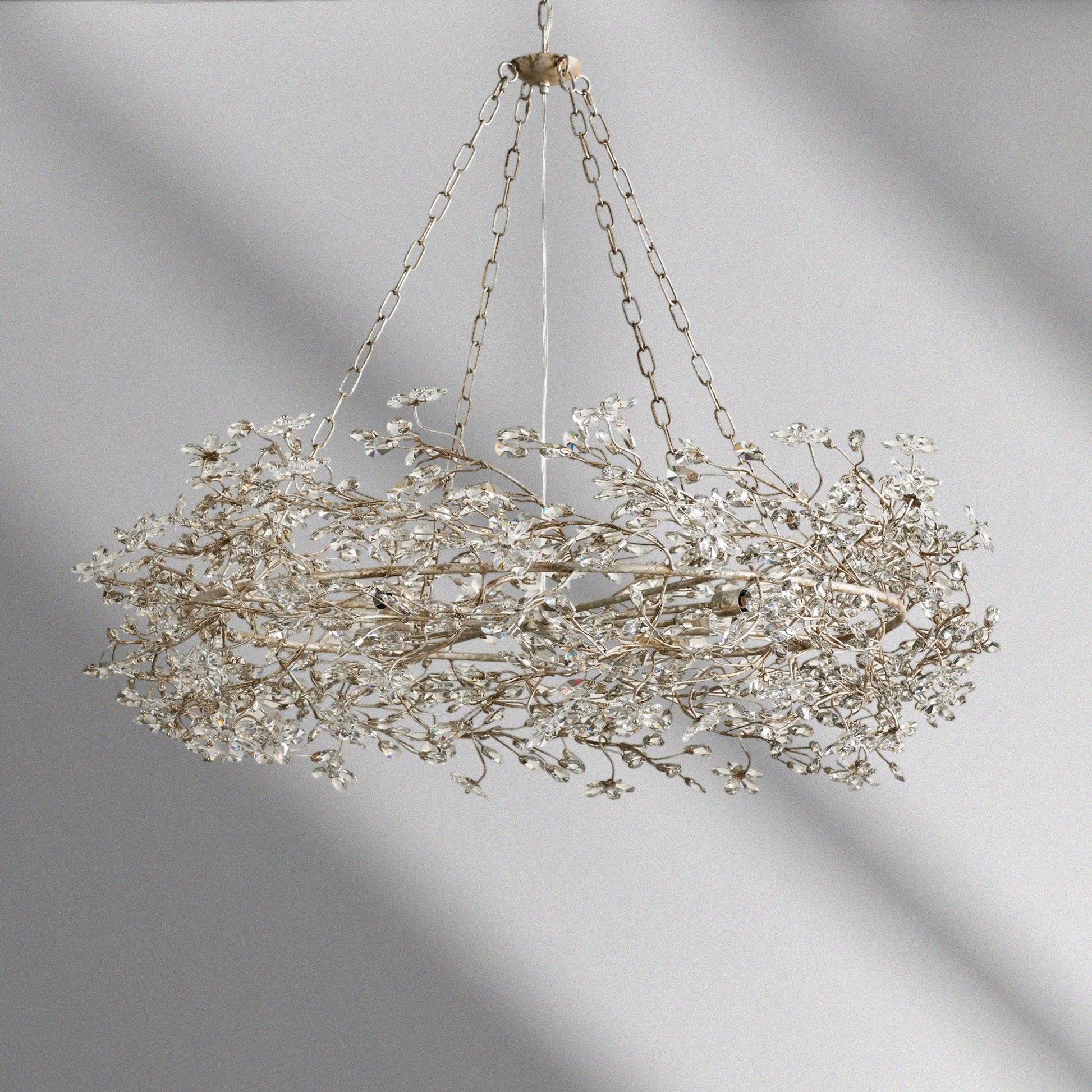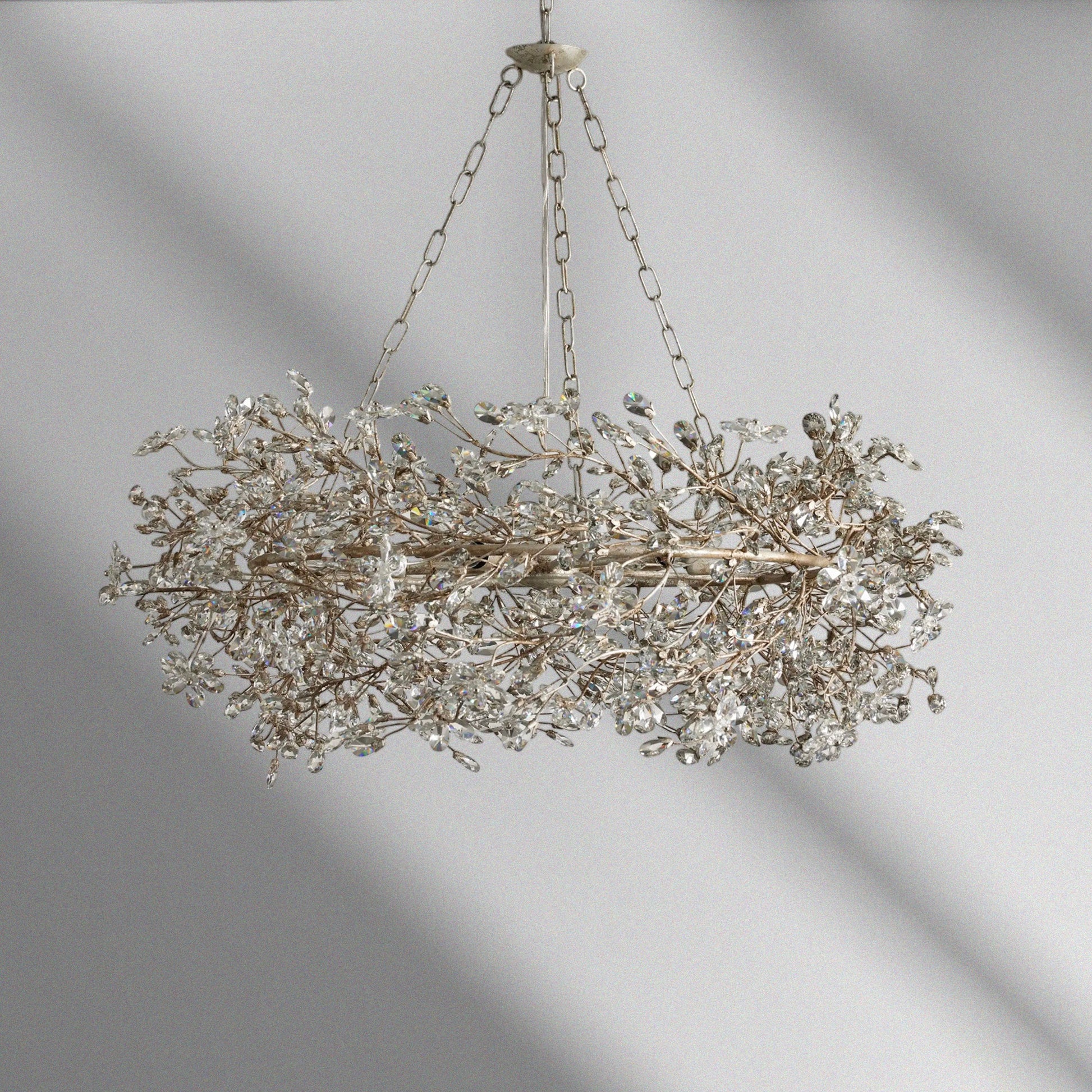 Luxurious crystal florals and drops illuminate each branch-like form of our elegant Fiore Lighting Collection. Crafted by our artisan partners in Italy from solid iron hand-finished in your choice of silver leaf, gold leaf, brass, or bronze, each piece is inspired by the beauty of nature and celebrates premium craftsmanship.