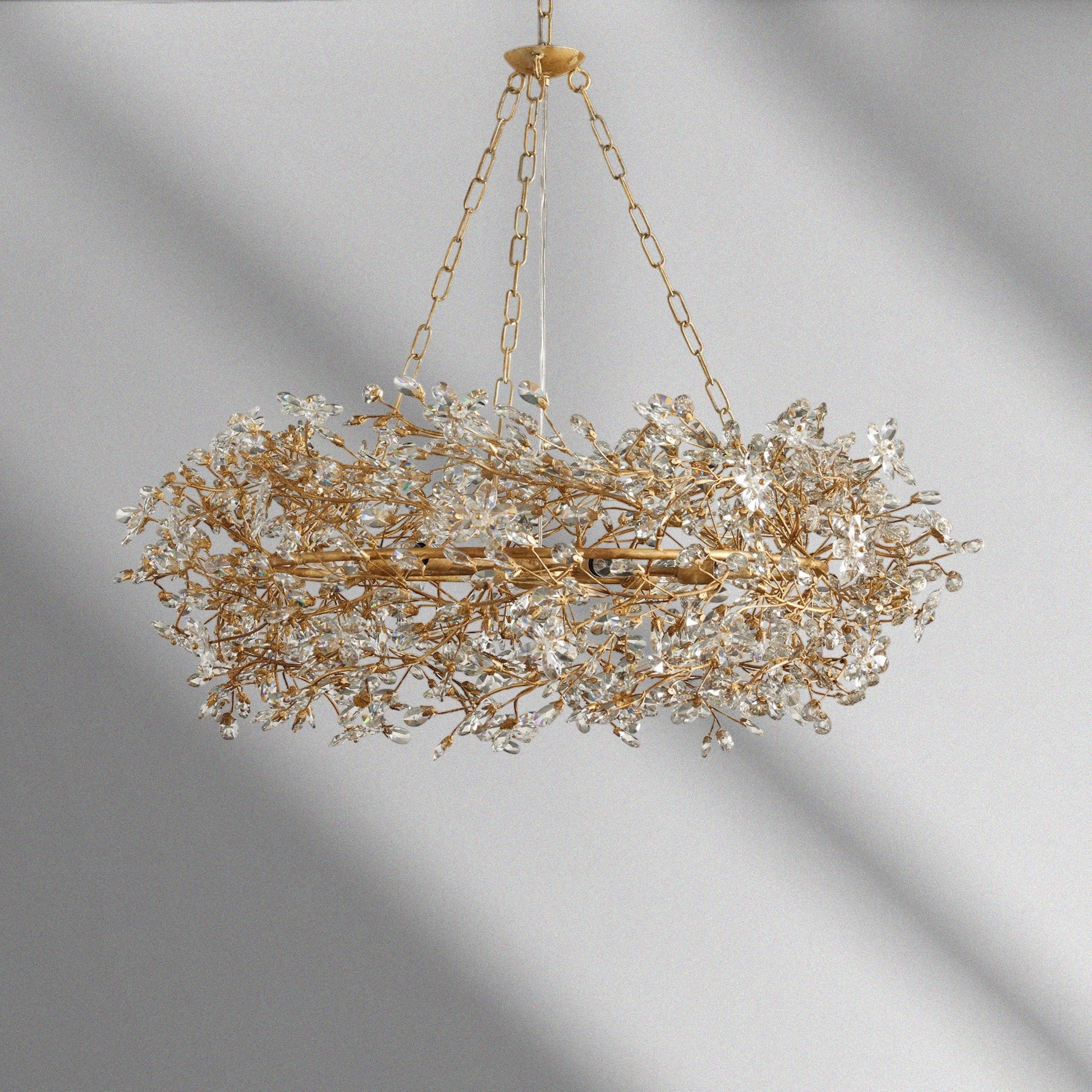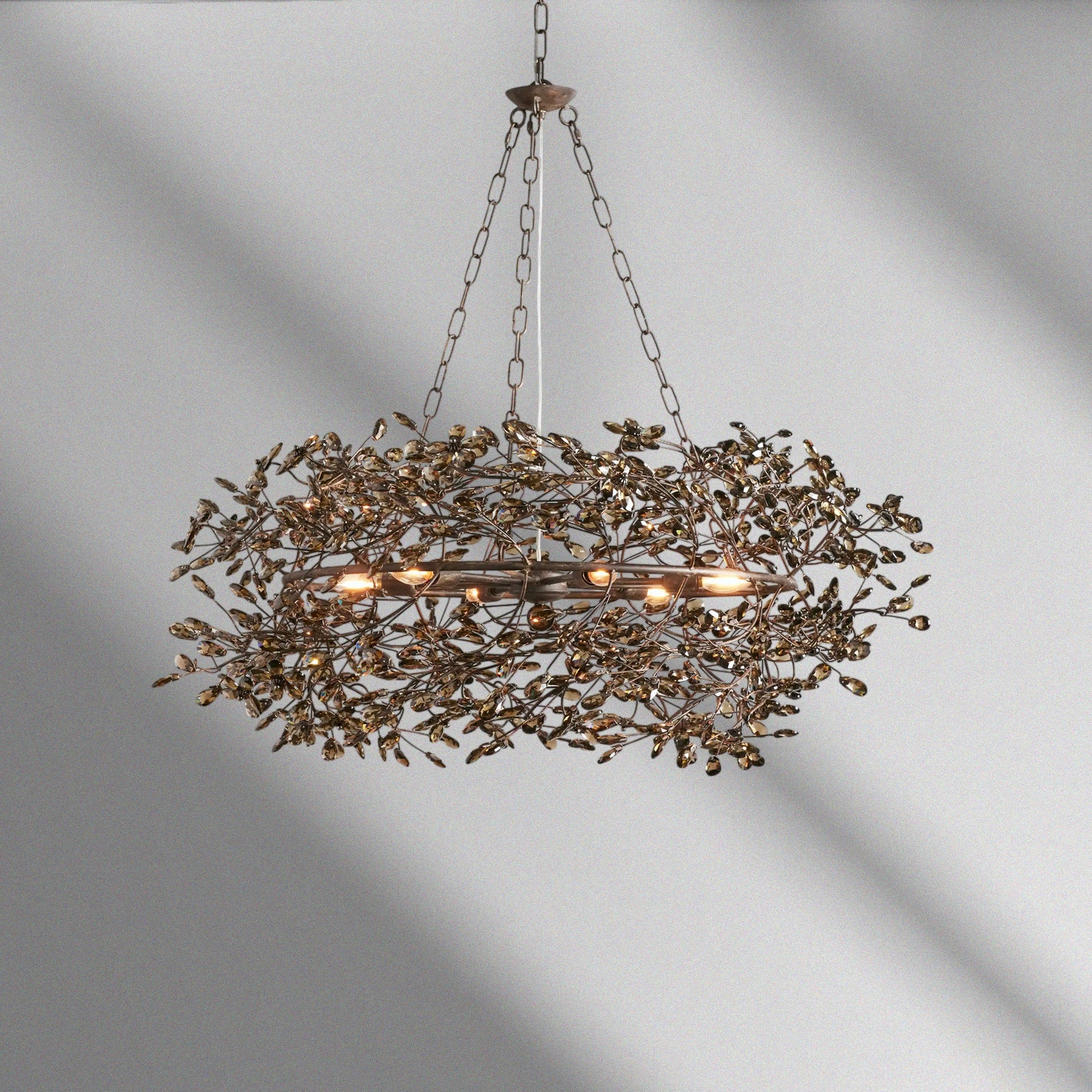 A: Our chandeliers are crafted from premium materials such as brass, glass, and crystal. Each piece is meticulously designed to ensure durability, elegance, and a luxurious finish that enhances your living space.