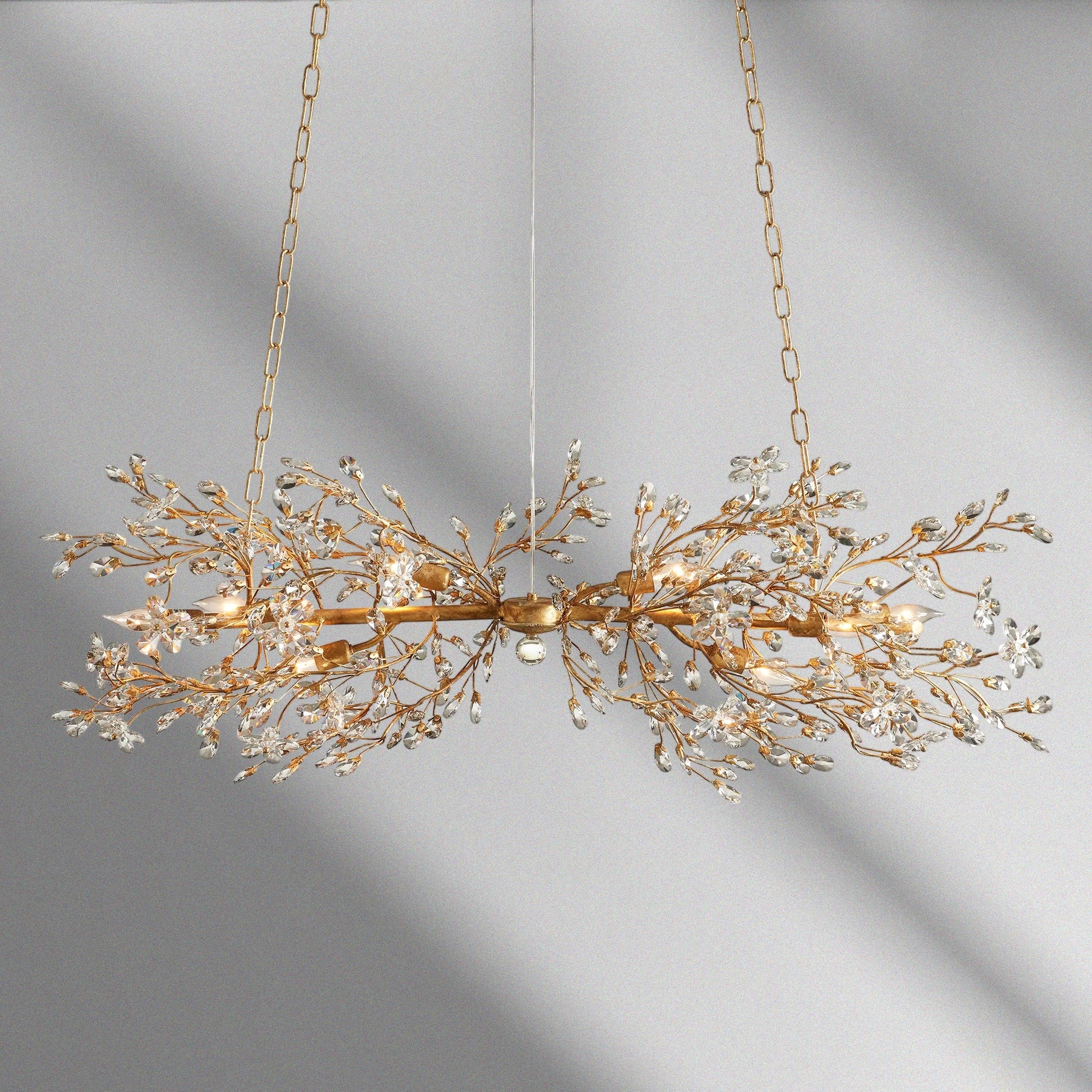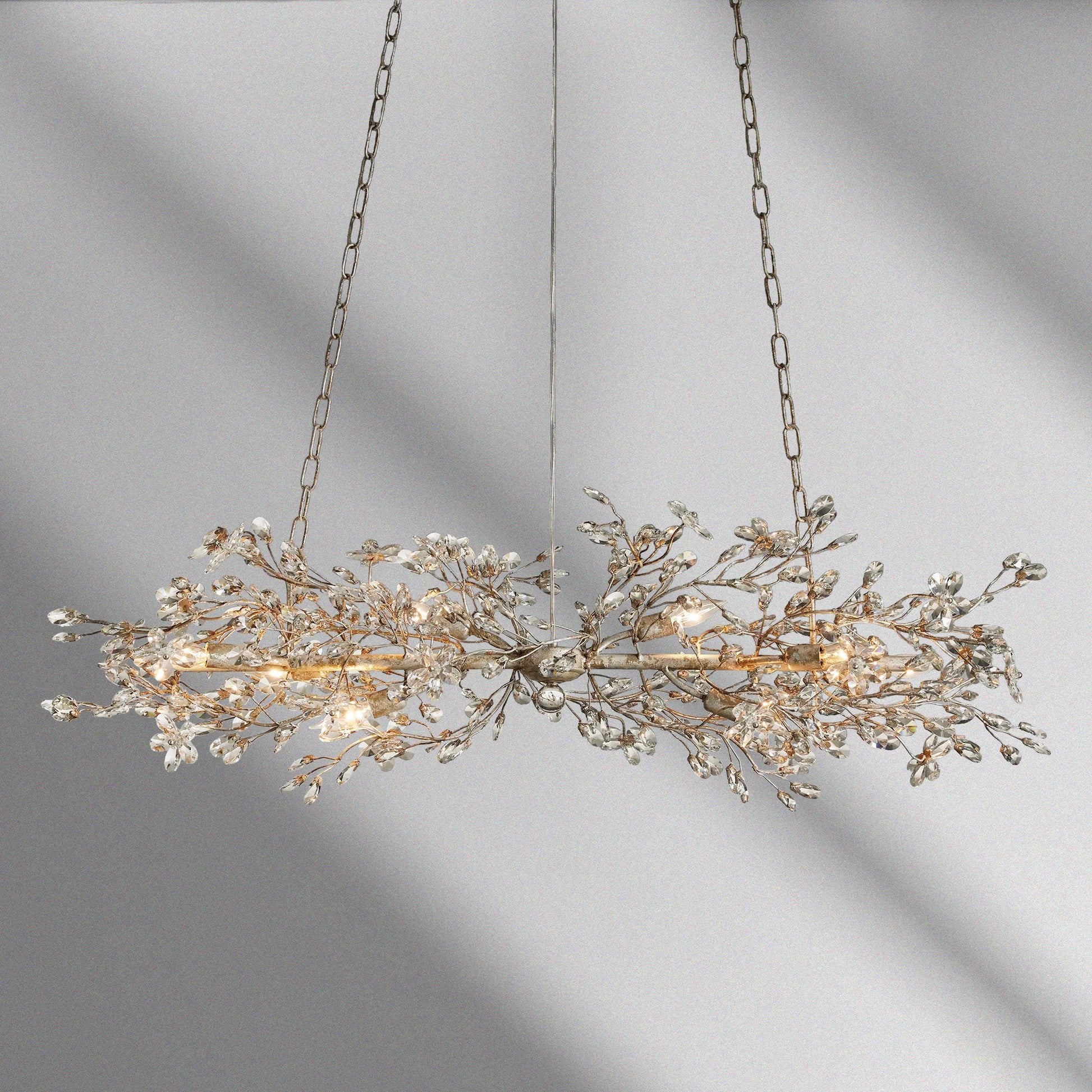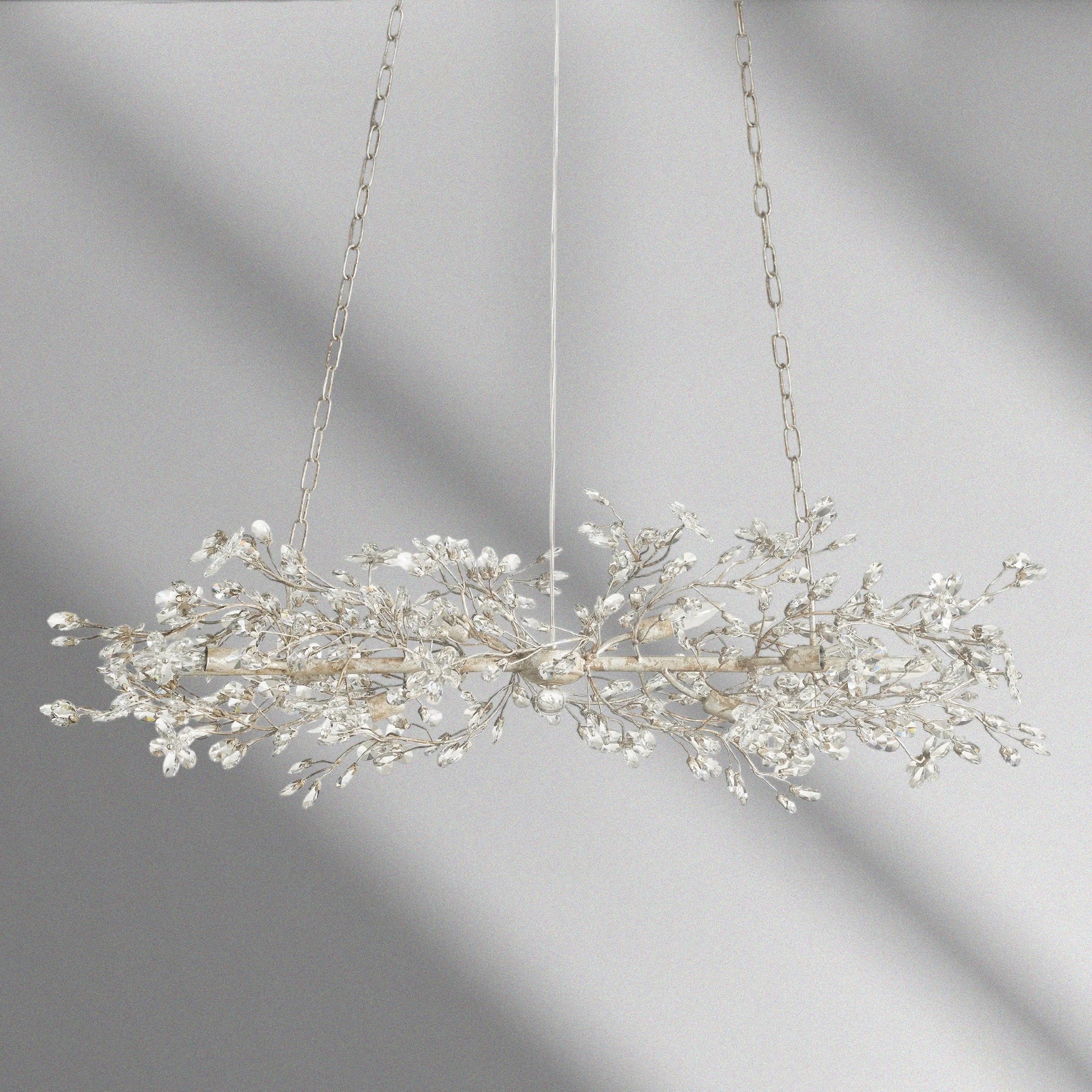 Luxurious crystal florals and drops illuminate each branch-like form of our elegant Fiore Lighting Collection. Crafted by our artisan partners from Italy from solid iron hand-finished in either silver, gold, or bronze, each piece is inspired by the beauty of nature and celebrates premium craftsmanship.