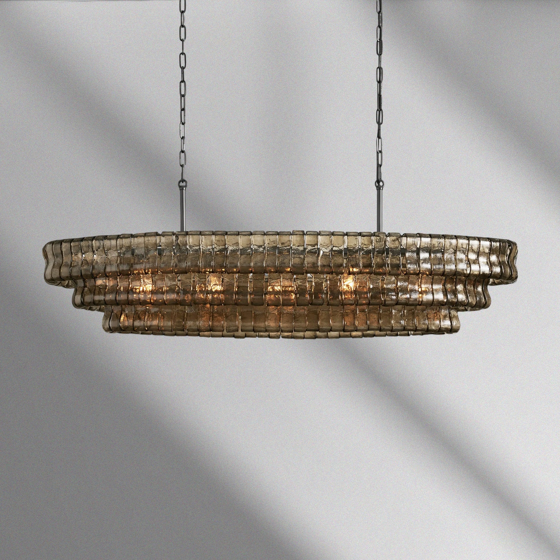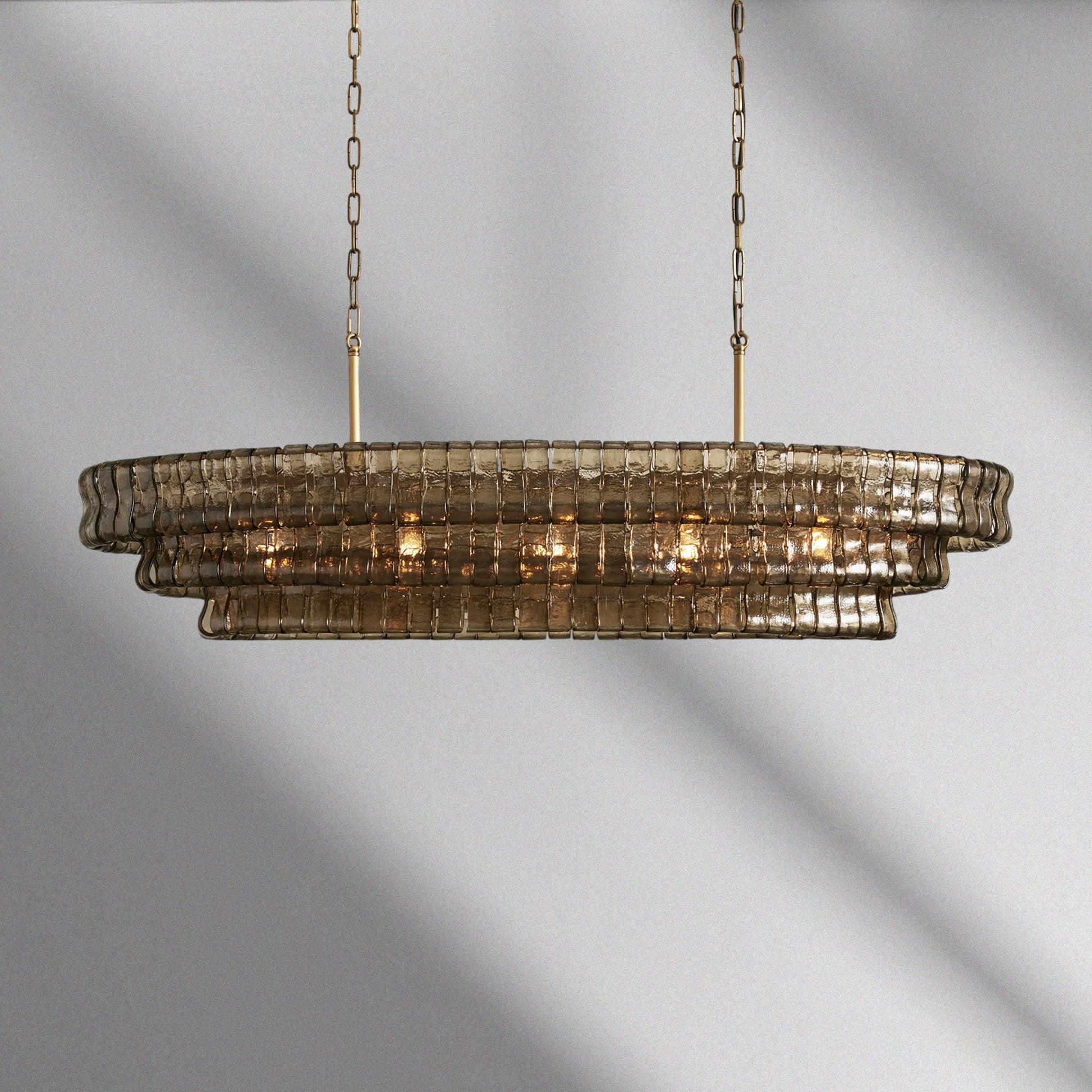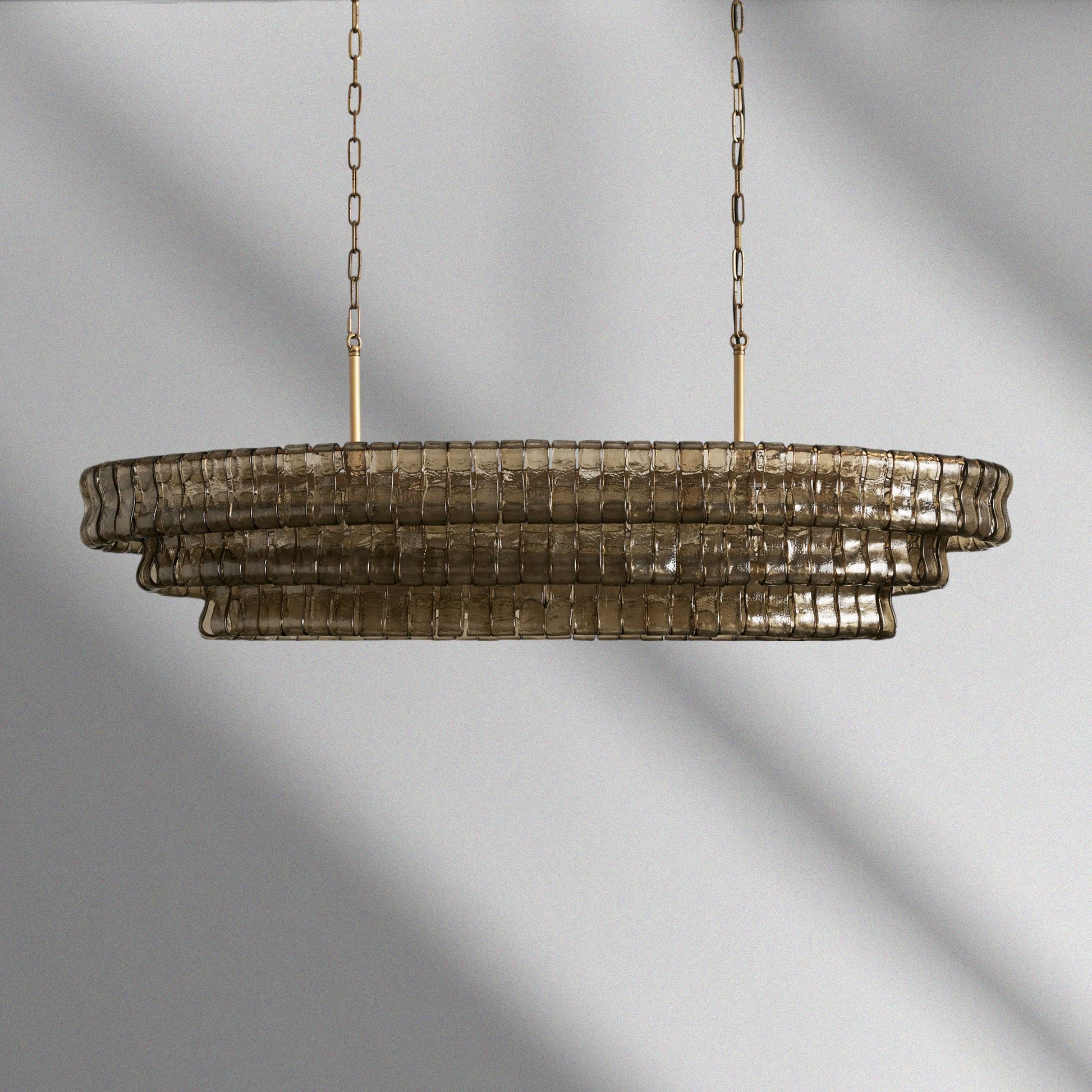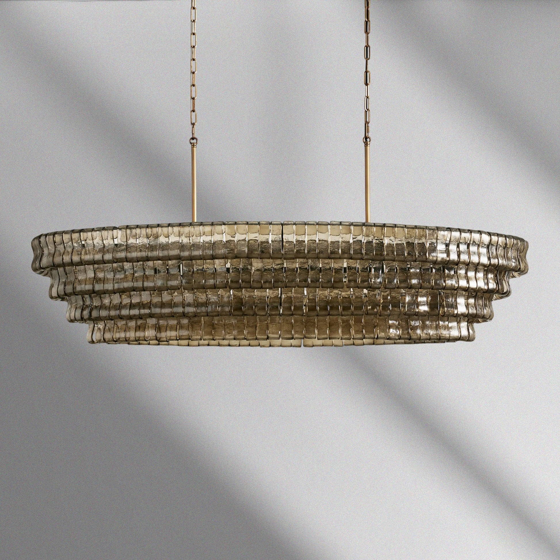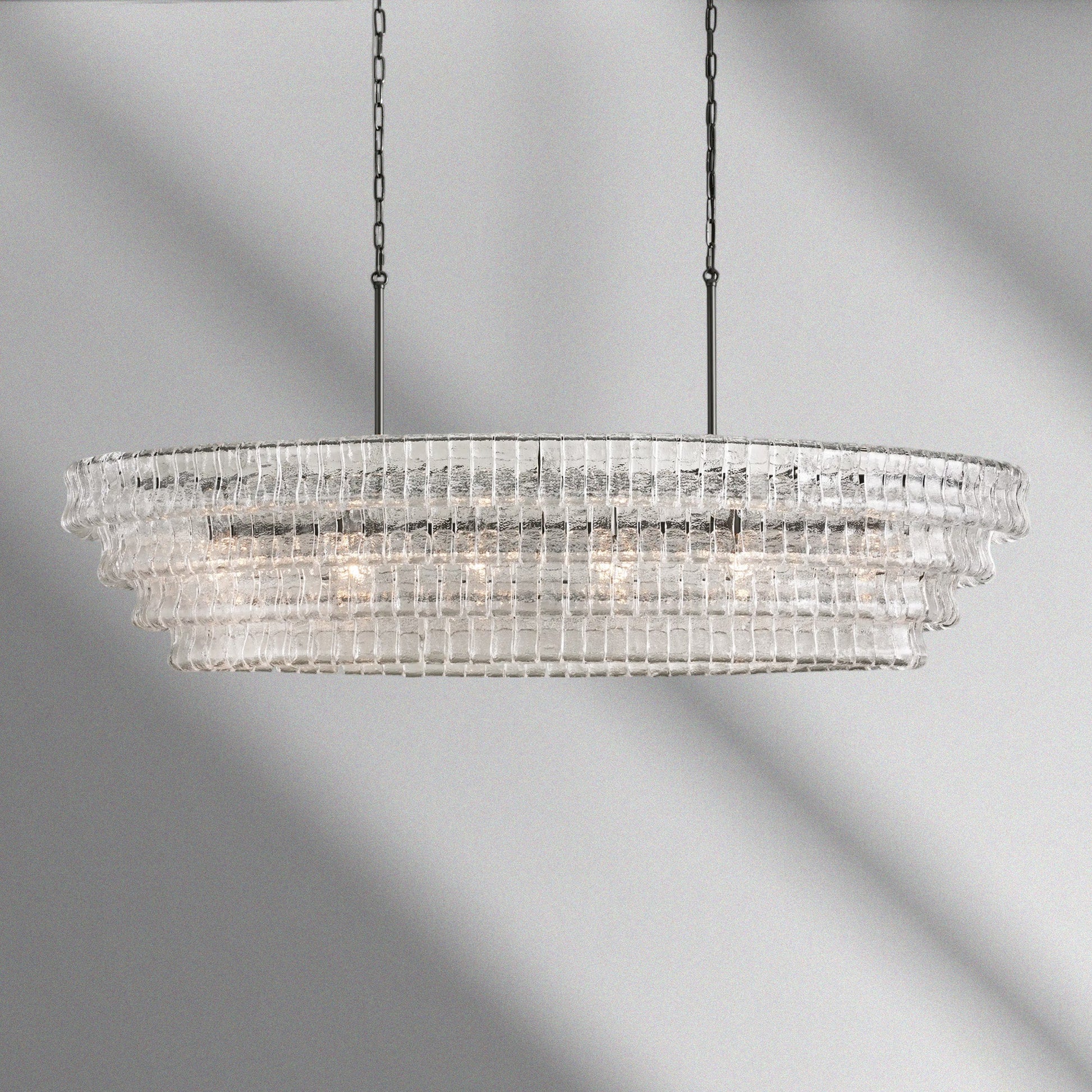 nspired by famously adorned Italian glass, our Ghiaccio Chandelier artfully diffuses light through pieces of curved, textured glass. Complemented by a plated-brass finish, Ghiaccio elegantly illuminates any room.