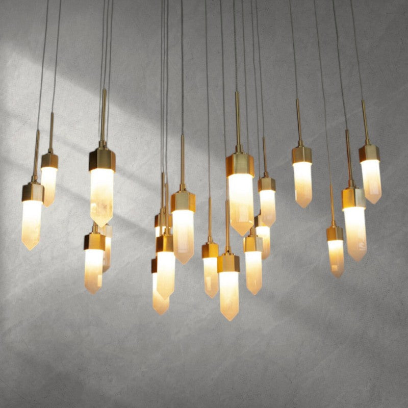 A: Our chandeliers are crafted from premium materials such as brass, glass, and crystal. Each piece is meticulously designed to ensure durability, elegance, and a luxurious finish that enhances your living space.