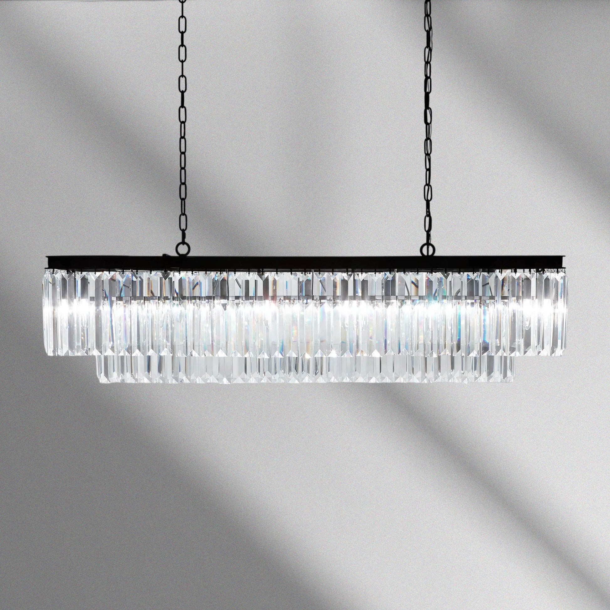 French Art Deco style of the 1920s is reborn in our glamorous Leyland Lighting Collection, featuring layered row upon row of faceted glass crystals from a rustic iron frame.