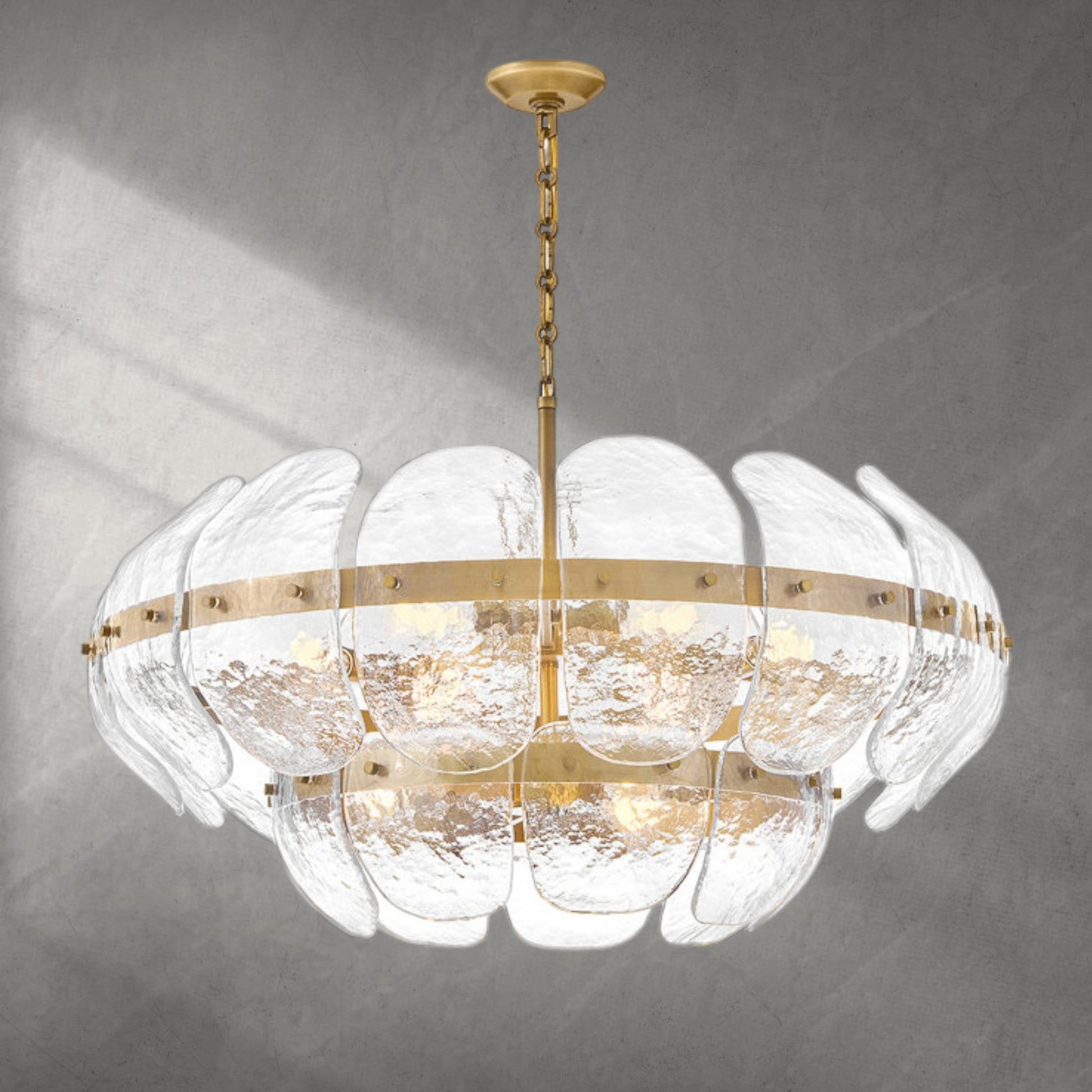 A: Our chandeliers are crafted from premium materials such as brass, glass, and crystal. Each piece is meticulously designed to ensure durability, elegance, and a luxurious finish that enhances your living space.
