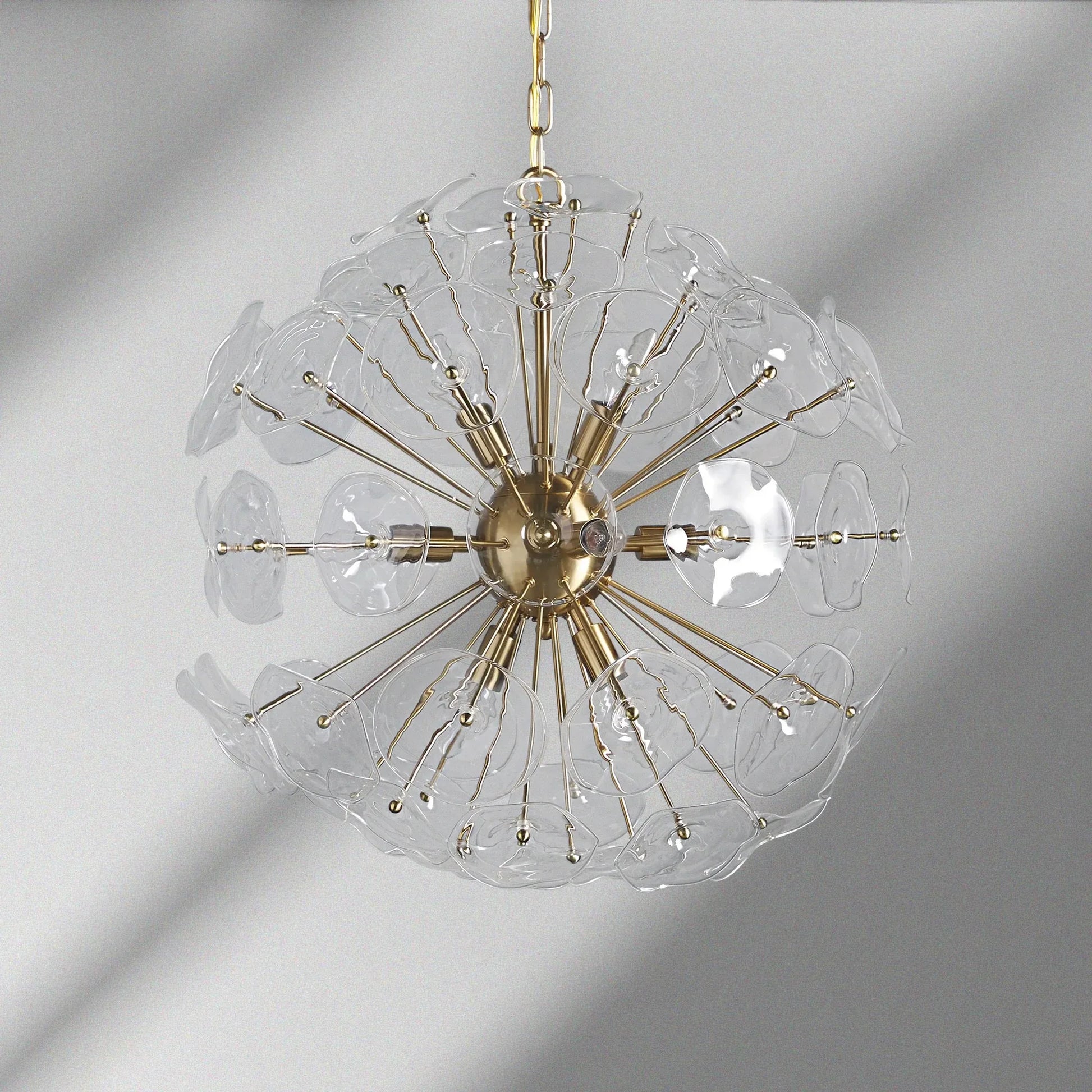 A: Our chandeliers are crafted from premium materials such as brass, glass, and crystal. Each piece is meticulously designed to ensure durability, elegance, and a luxurious finish that enhances your living space.