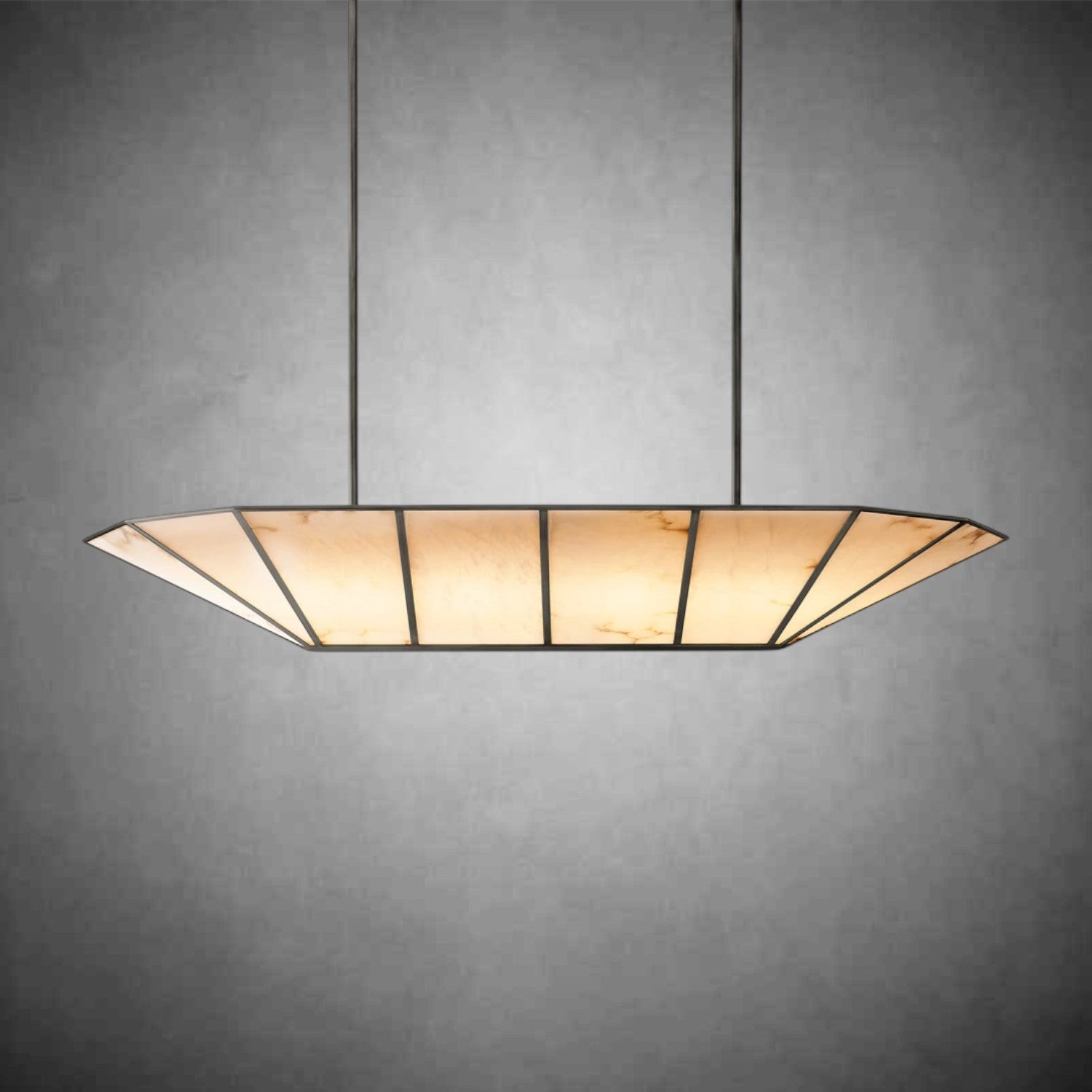 - Shades are handcrafted of solid alabaster panels; panels are removable to simplify bulb changing