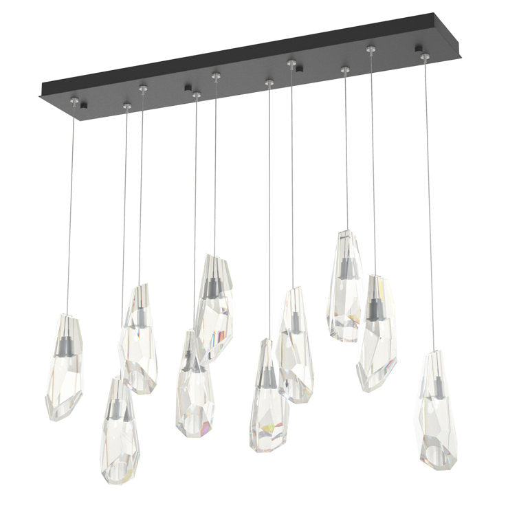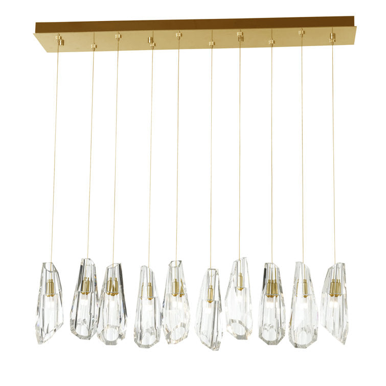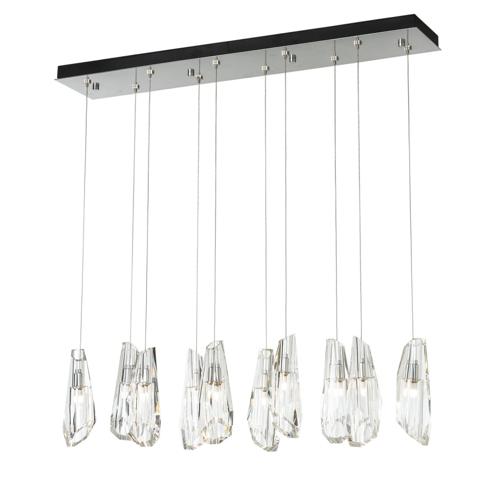 A linear multi-port fixture, the Luma pendant features two rows of large, stunning hand-cut and polished crystals that can be hung at the same level or staggered to suit the space. This graceful array of crystal-adorned lights creates a focal point in any room.