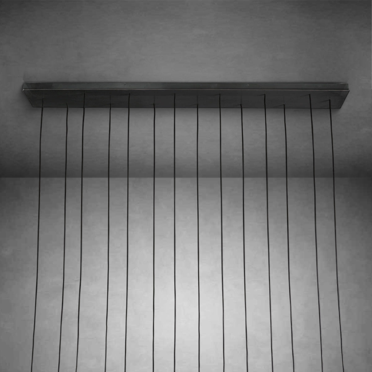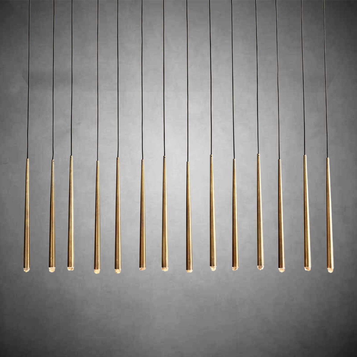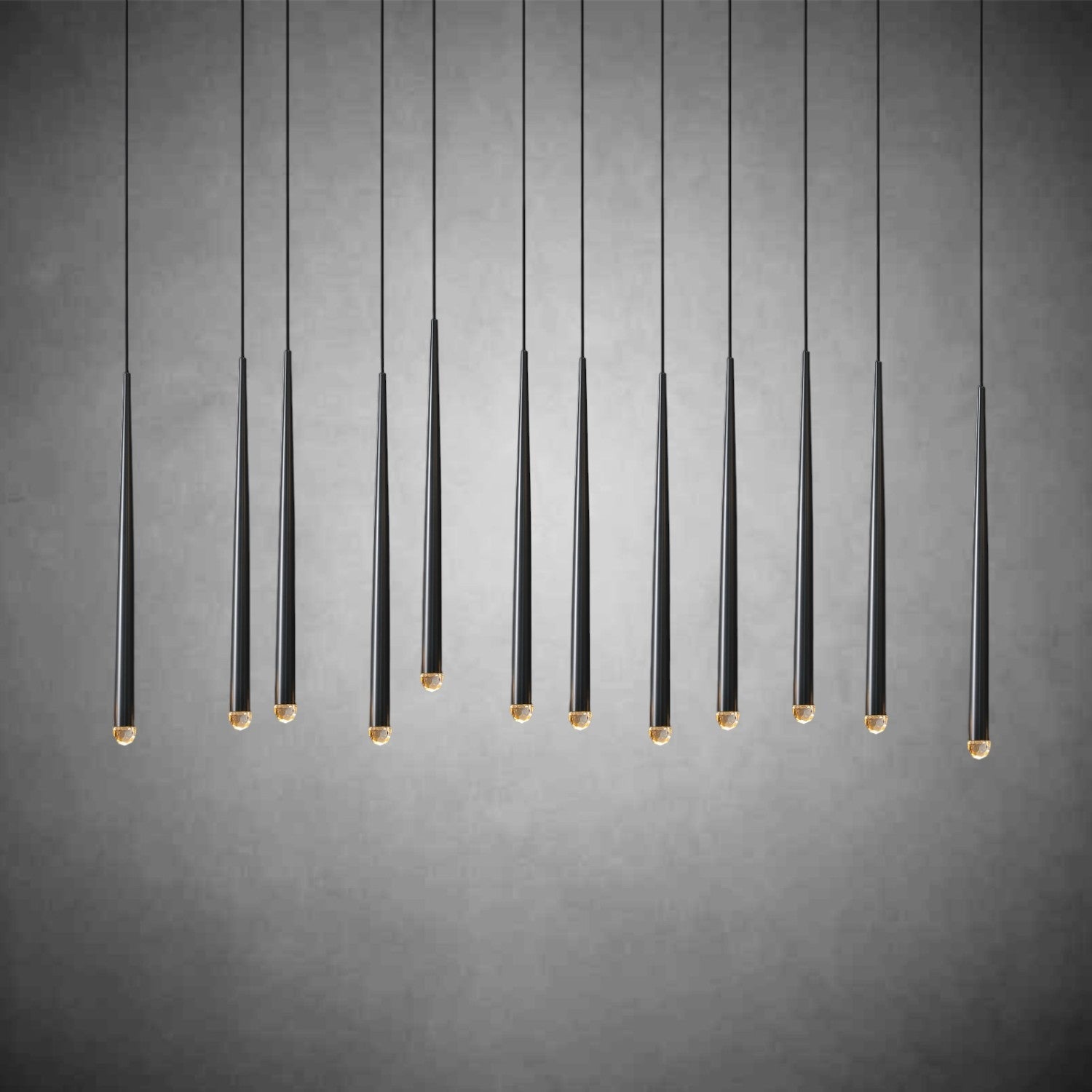 - 14 lights suspended from slender black cords