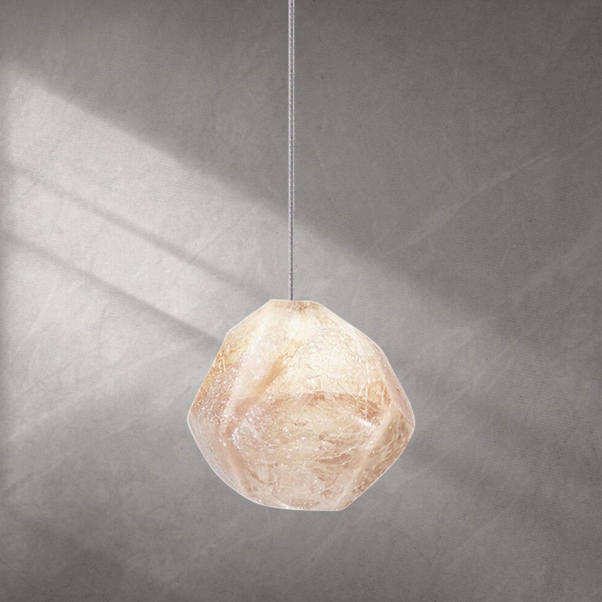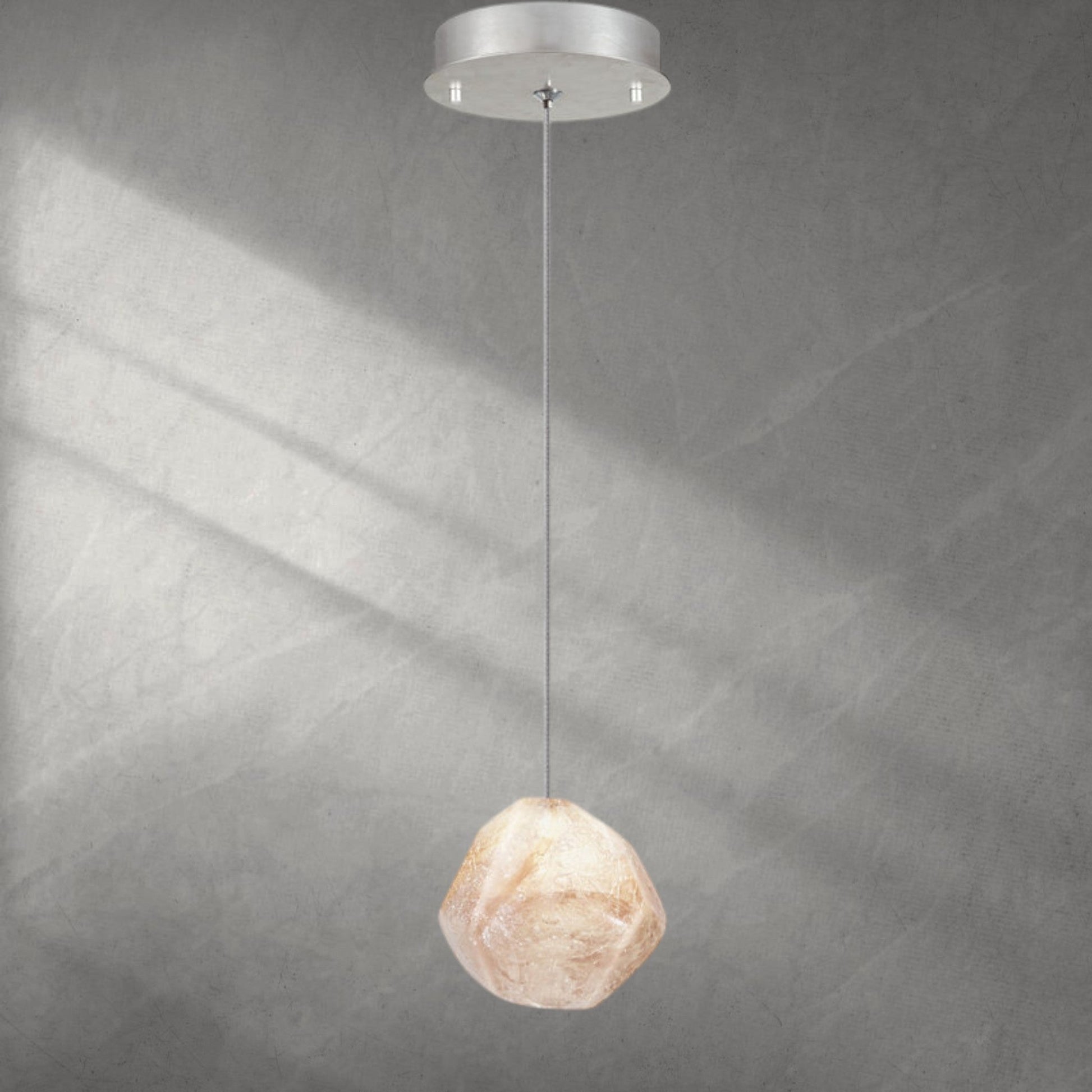 Master glass artisans blend quartz with other minerals to create a natural quartz glass drop pendant with a canopy.
