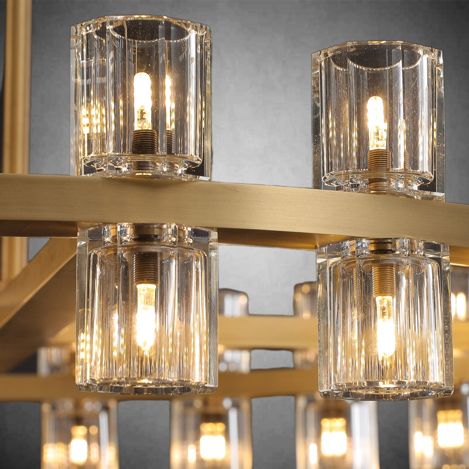 A: Our chandeliers are crafted from premium materials such as brass, glass, and crystal. Each piece is meticulously designed to ensure durability, elegance, and a luxurious finish that enhances your living space.