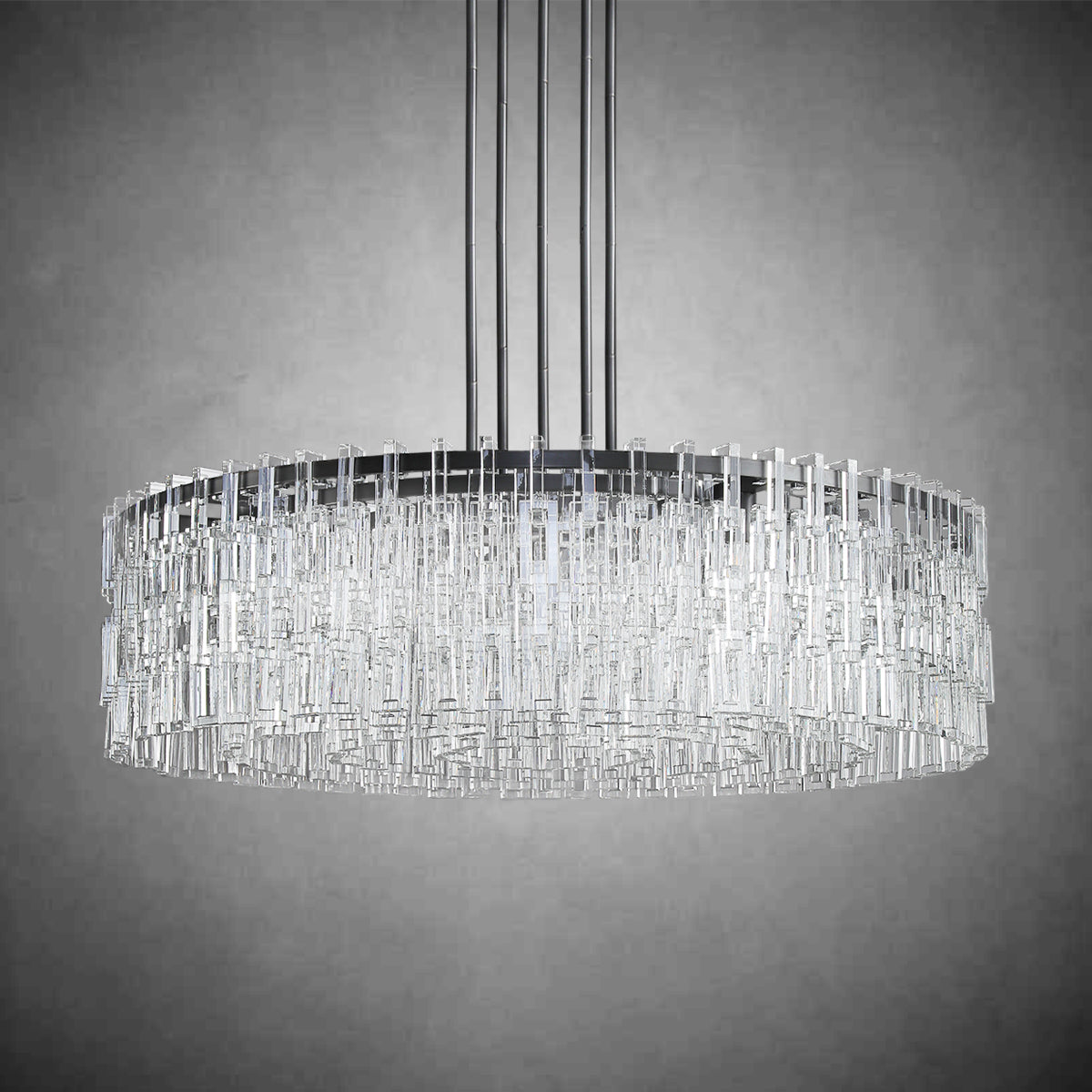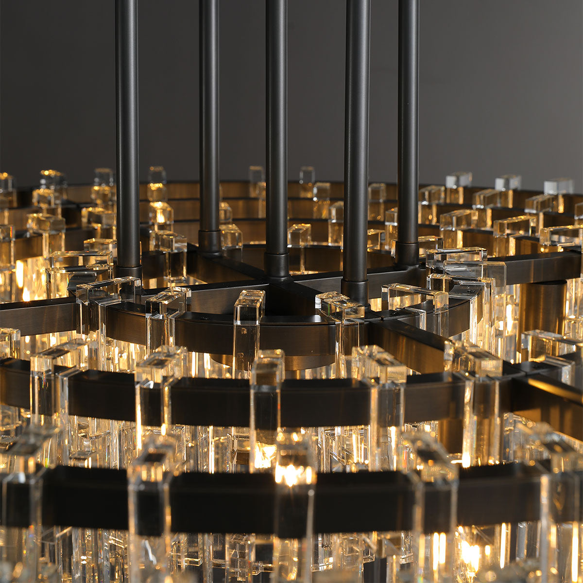 A: Our chandeliers are crafted from premium materials such as brass, glass, and crystal. Each piece is meticulously designed to ensure durability, elegance, and a luxurious finish that enhances your living space.