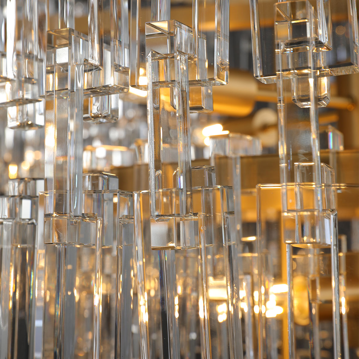 A: Our chandeliers are crafted from premium materials such as brass, glass, and crystal. Each piece is meticulously designed to ensure durability, elegance, and a luxurious finish that enhances your living space.